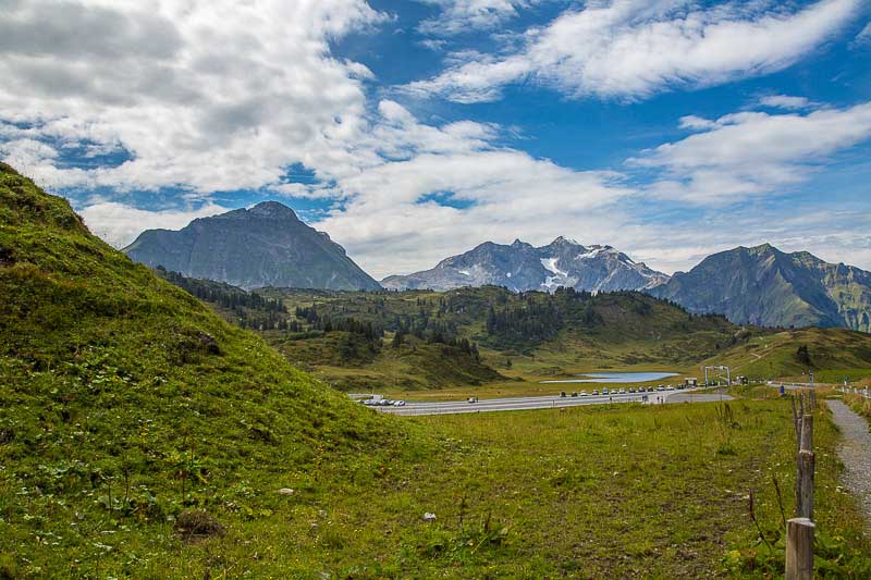 Jetzt sahen wir das erste Mal die Bergipfel von unserem Balkon. Ein Zeichen dafür, dass wir hoch hinaus können ohne in die Wolken zu gelangen. Wir haben eine Rundtour durch den Bregenzerwald geplant, der als Höhepunkt den Hochtannbergpass hatte. Auf dem Rückweg machten wir noch einen kleinen Abstecher nach Oberstdorf um einen Blick auf die Skisprungschanze zu erhaschen.