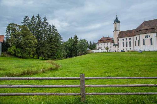 Wieskirche (erbaut 1744) Wallfahrtskirche zum Gegeißelten Heiland auf der Wies. Die Wieskirche gilt als eine der schönsten Rokokokirchen Süddeutschlands. Die Wieskirche gilt als eine der schönsten Rokokokirchen Süddeutschlands.
