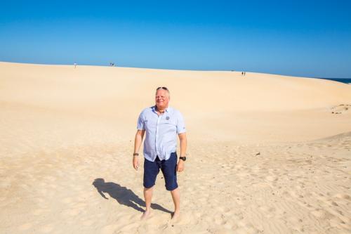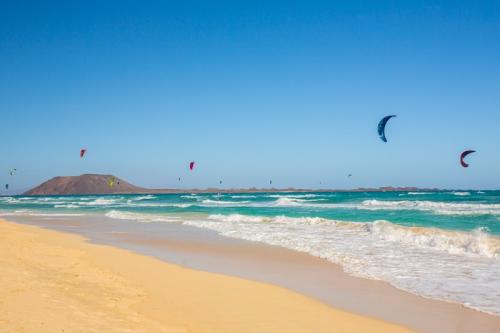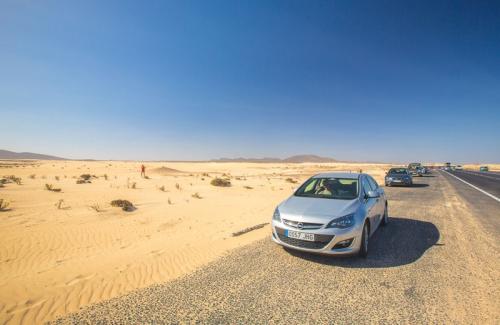 Am zweiten Tag unserer Sightseeing-Tour durch Fuerteventura haben wir uns den Norden der Insel vorgenommen. Nach einer langen Fahrt quer über die Insel haben wir einen ersten Zwischenstop in Puerto Castillo gemacht. Dies ist ein sehr schönes Örtchen mit kleinem Hafen. Danach ging es weiter zum Hafen von Corralejo. Corralejo ist eine lebendige Stadt, die allerdings überwiegend von englischen Touristen besucht wird. Die bekannteste Attraktion sind aber die Dünen von Corralejo in El Jable. Noch nirgends haben wir so viel Kitesurfer gesehen wie dort.