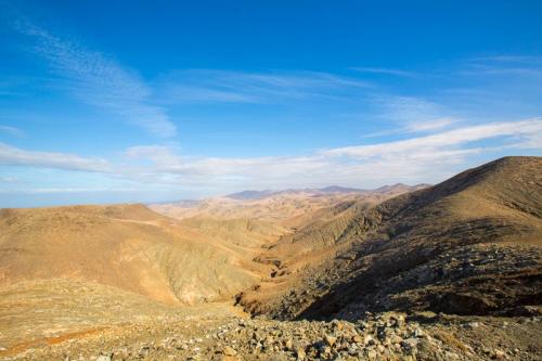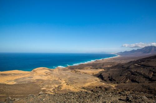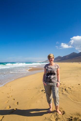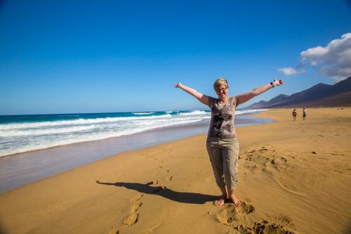 Fuerteventura ist zwar recht groß, aber in 3 Tagen hat man alles gesehen was man gesehen haben sollte. So sind wir am ersten Tag den Süden der Insel abgefahren. Als erstes haben wir den Hafen von Morro Jable besucht, um von dort aus weiter nach Cofete zu fahren. Die Fahrt führte uns über eine Schotterpiste und einige Serpentinen an den wunderschönen Strand von Cofete, der nie stark besucht ist und meist sehr hohe Wellen hat. Oberhalb des Strandes liegt die Villa Winter, der wir auch einen Besuch abgestattet hatten. Nach einer kleinen Pause sind wir dann wieder zurück und zum südlichsten Punkt von Fuerteventura gefahren, zum Faro de Punta Jandia. Da noch etwas Zeit war, sind wir auf dem Rückweg noch nach Costa Calma und haben die Lagune von Sotavento bestaunt, in der viele Kitesurfer unterwegs waren.