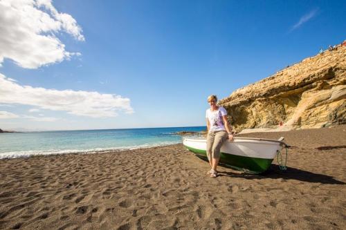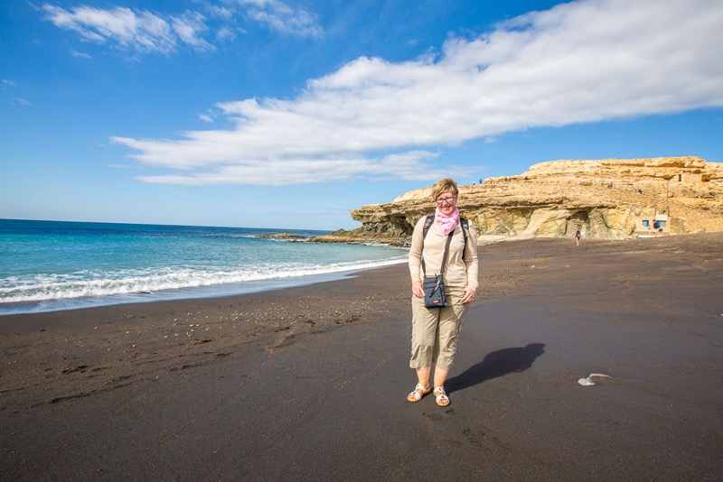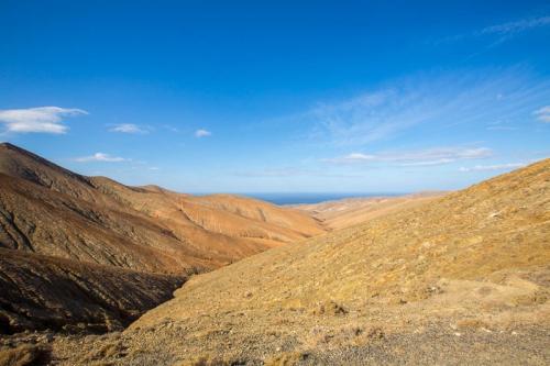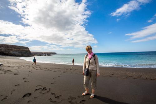 Der dritte und letzte Tag brachte uns in den Westen von Fuerteventura, welcher gänzlich anders ist wie der Norden und der Süden. Zuerst ging es zur Playa de Ajuy, was heutzutage touristisch wenig erschlossen ist. Und dies ist auch gut so, denn so bleibt der Ort idyllisch und romantisch. Besonders der schwarze Strand und die nahen Höhlen sind einen Ausflug wert. Weiter ging es ins Gebirge zum Mirador las Penitas, wo es sehr windig und kühl war. Da waren die kurzen Sachen etwas fehl am Platz. Nach zahlreichen Fotos und leichter Unterkühlung ging es wieder ins Tal nach Pajara wo eine kunsthistorisch bedeutsame Kirche steht. Ansonsten ist da nicht viel los. Abschließend ging es wieder ins Gebirge und über eine kurvenreiche und schöne Bergstraße mit tollen Ausblicken nach Betancuria. Einer der schönsten Orte der Insel, er liegt in einem von Bergen umschlossenem Tal mit knapp 500 Bewohnern.