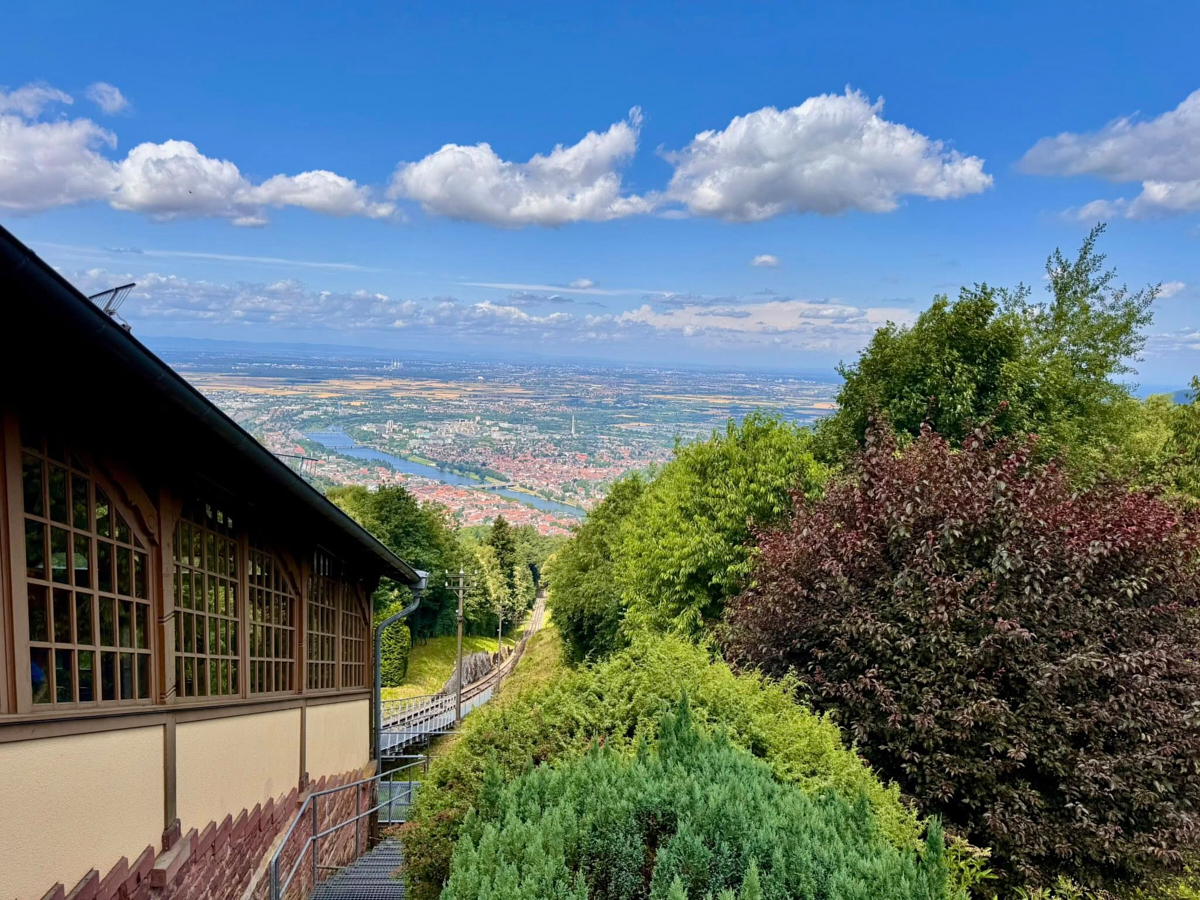 Mit der historischen Bergbahn ging es hoch auf den Königstuhl, mit einem herrlichen Blick auf Heidelberg