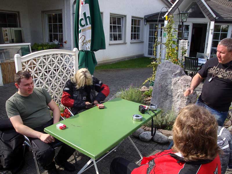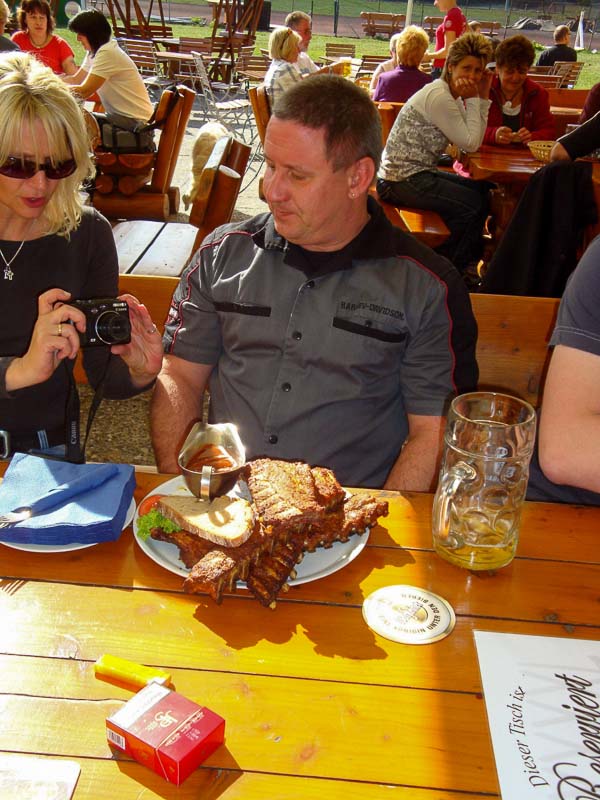 Im September 2009 sind wir mit einigen Motorrädern nach Hofheim gefahren. Frank hatte für uns eine sehr schöne Tour ausgearbeitet, die landschaftlich sehr schön war. Die Fahrt war einfach nur Klasse. Die Hauptattraktion war aber das XXL-Restaurant "Waldgeist", in der es riesige Portionen gibt. Es gibt nur wenige, die diese großen Portionen schaffen. Doch auch in unseren Reihen waren diese vertreten.