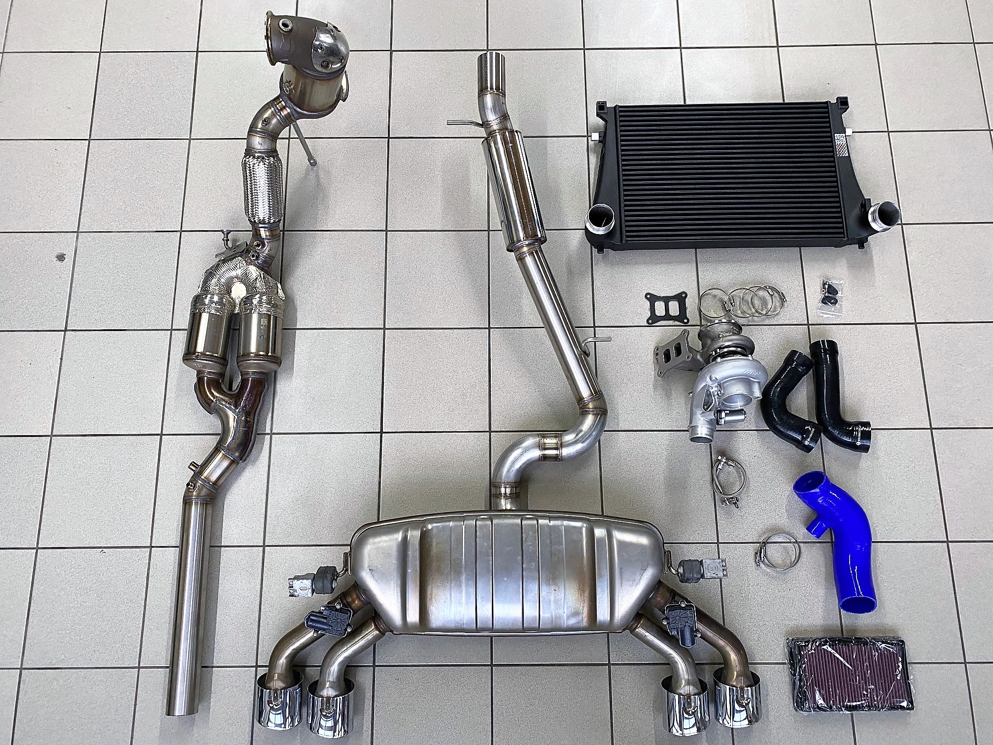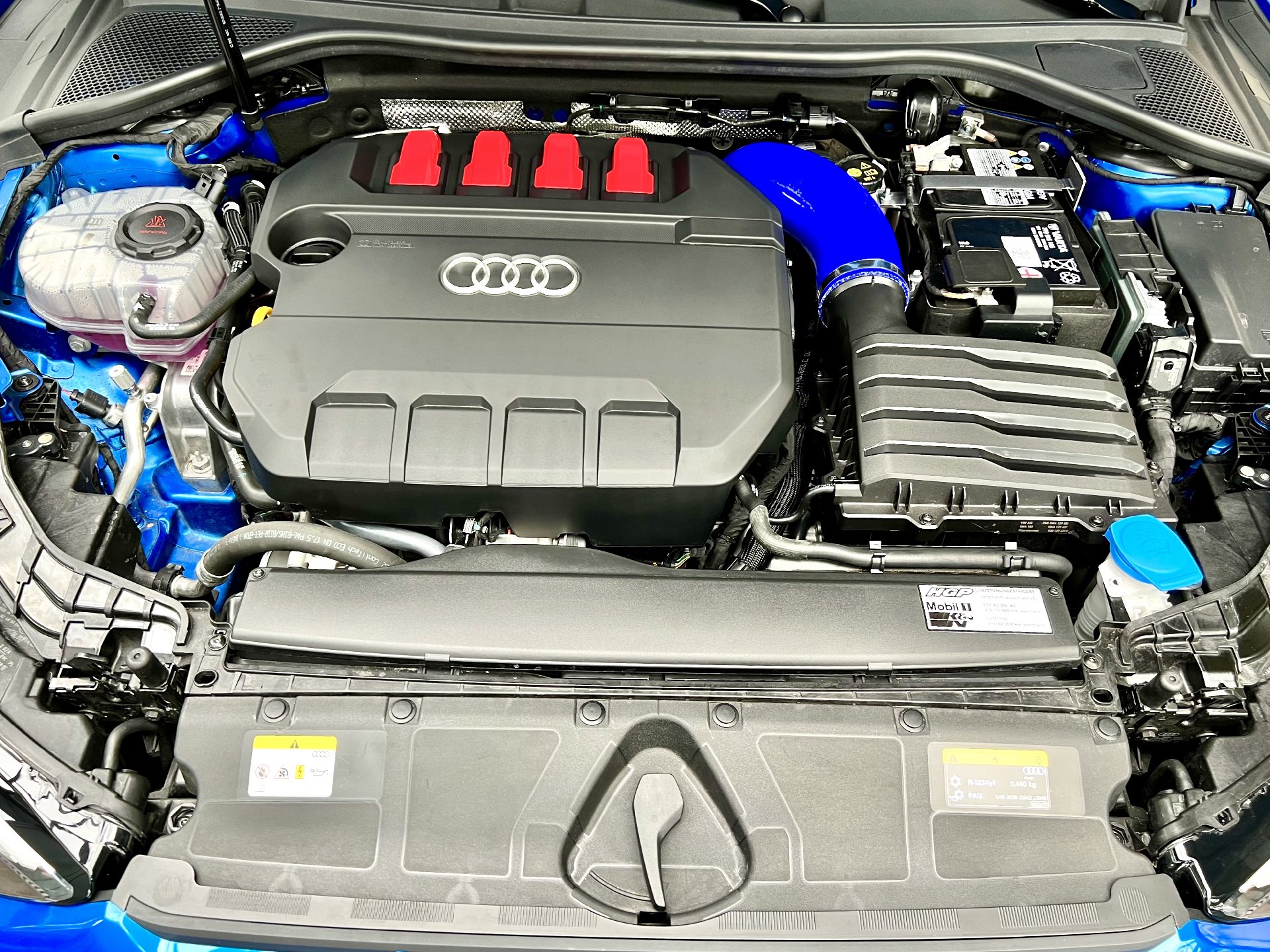 Da der Sound für ein Auto >300 PS nicht wirklich ansprechend war, war ich länger auf der Suche nach einem legalen Tuning, der dies ändert. Meine erste Wahl war Link: APR, doch hier tat sich einfach nichts. Auch nach über einem Jahr kamen keine Teile für den neuen Audi S3 (8Y) auf den Markt. Durch Zufall bin ich dann auf HGP gestossen, was noch mehr Fahrspass versprach. Denn neben einem geänderten 76mm Abgasstrang inkl. Downpipe, 150mm Stahlkatalysator und Partikelfilter, kam dann noch ein größerer Turbo inkl. Wagner Ladeluftkühler und ein erweiterter Lufteinlass bis zum Turbolader mit K&N Luftfilter hinzu. Die Motor.- und Getriebe.- Software wurde ebenfalls angepasst. So wurde dann eine Leistung von 526PS und 629NM erzielt. Damit beschleunigt der Wagen jetzt schneller wie z.B. ein Lamborghini Gallado oder ein Porsche GT3 RS. Der Sound ist jetzt übrigens perfekt. Im Comfort -Modus schön dezent, aber im Dynamic-Modus kernig und mit Pops & Bangs. Das Beste ist, dass man optisch keine Änderungen sieht und alles vom TÜV abgenommen und eingetragen wurde.