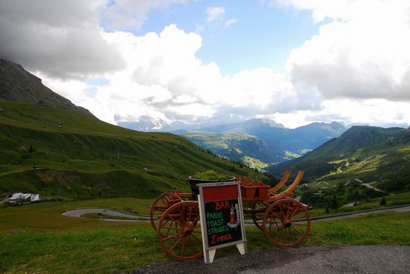 | Pässe: | Passo di Gardena (2121m) Passo di Sella (2241m) Passo di Pordoj (2239m) Passo di Falzarego (2105m) Passo di Giau (2233m) Passo di Fedaia (2057m) Passo di Costalunga (1745m) Passo di Gardena (2121m) |