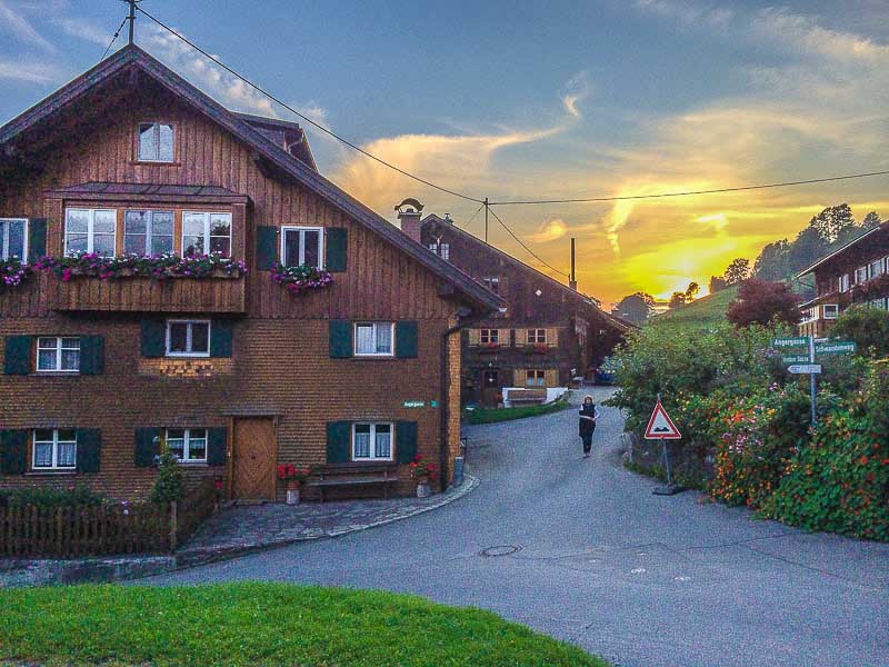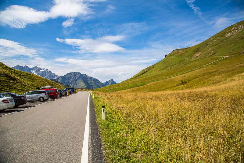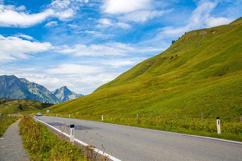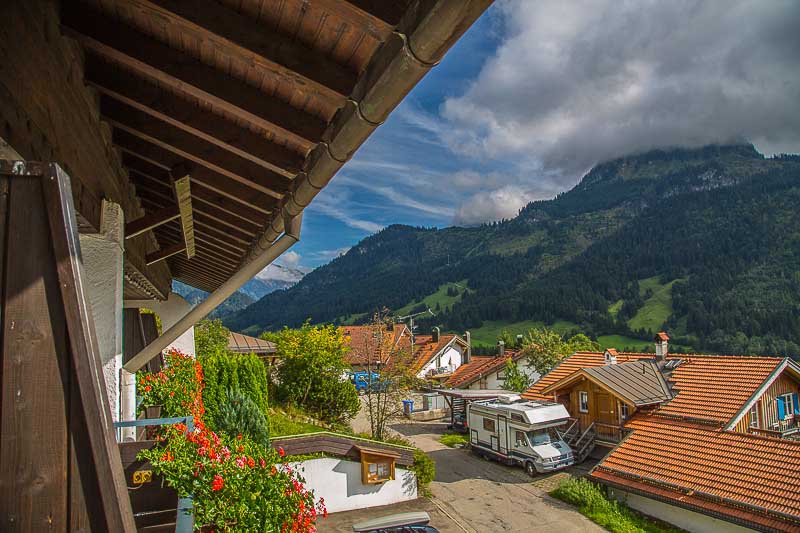 Jetzt sahen wir das erste Mal die Bergipfel von unserem Balkon. Ein Zeichen dafür, dass wir hoch hinaus können ohne in die Wolken zu gelangen. Wir haben eine Rundtour durch den Bregenzerwald geplant, der als Höhepunkt den Hochtannbergpass hatte. Auf dem Rückweg machten wir noch einen kleinen Abstecher nach Oberstdorf um einen Blick auf die Skisprungschanze zu erhaschen.