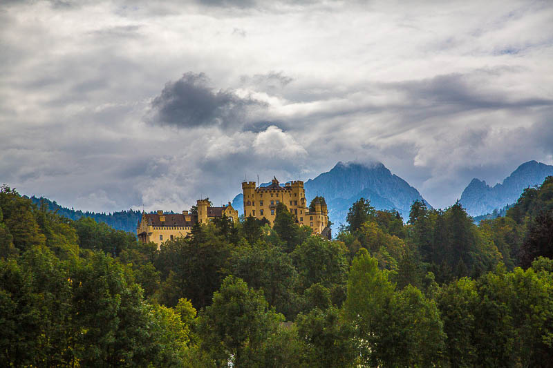 Weit reicht die Geschichte von Schloss Hohenschwangau zurück. Erstmals erwähnt wird es als Burg Schwanstein im 12. Jh., als Sitz der Edlen vom Schwangau. In den folgenden Jahrhunderten wechselten die Besitzer, die Burg verfiel, wurde neu aufgebaut und wieder zerstört. Im Jahre 1832 erwarb Kronprinz Maximilian, der spätere König Max II, die Ruine und ließ sie von dem Theatermaler Dominik Quaglio im englischen Tudorstil umbauen, so wie man Schloß Hohenschwangau noch heute besichtigen kann. Das romantische Schloß diente der königlichen Familie als Sommerresidenz und war die glückliche Kinderstube Ludwigs II.