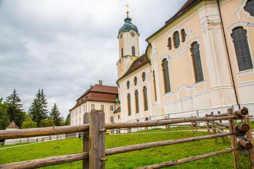 Wieskirche (erbaut 1744) Wallfahrtskirche zum Gegeißelten Heiland auf der Wies. Die Wieskirche gilt als eine der schönsten Rokokokirchen Süddeutschlands. Die Wieskirche gilt als eine der schönsten Rokokokirchen Süddeutschlands.