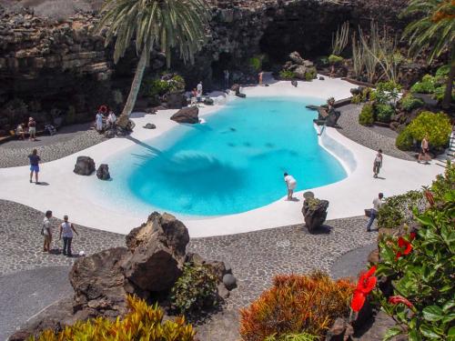 Lanzarote, eine der Kanarischen Inseln vor der Küste Westafrikas, die von Spanien verwaltet werden, ist für sein stets warmes Wetter, seine Strände und die vulkanisch geprägte Landschaft bekannt. Der felsige Nationalpark Timanfaya entstand durch Vulkanausbrüche in den 1730er Jahren. Die Cueva de los Verdes ist eine durch Lavaströme geformte Höhle. Der an der Ostküste gelegene Badeort Puerto del Carmen umfasst weiß getünchte Häuser und Strände.