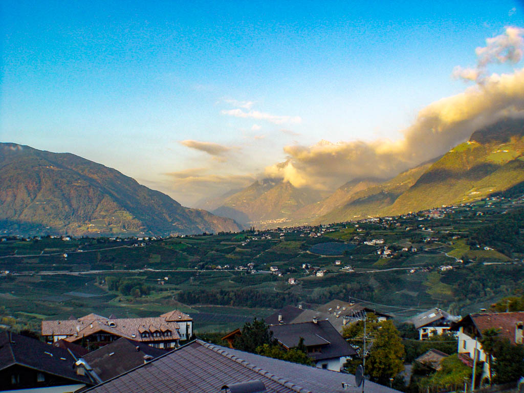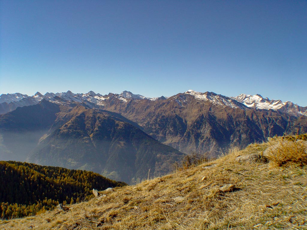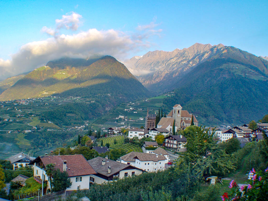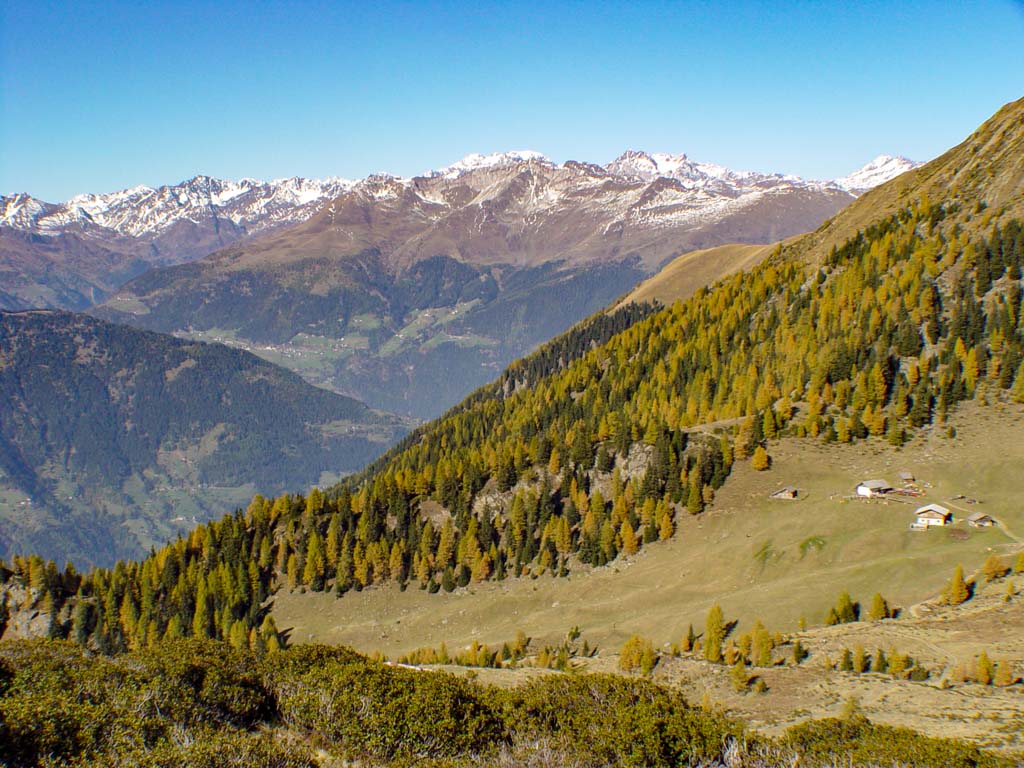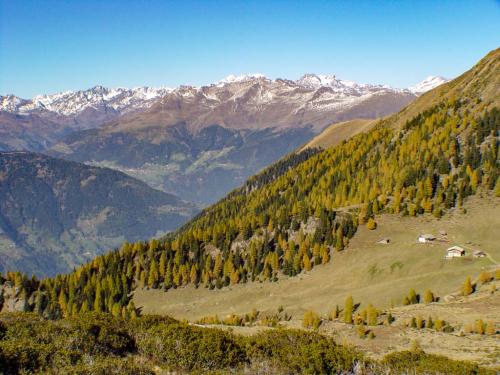 Eben verlaufende Waalwege im Mittelgebirge führen vorbei an Weinreben, Apfelwiesen und Kastanienhainen. In den höheren Lagen verlaufen gut markierte Wanderwege von Alm zu Alm und hinauf in das karge Hochgebirge.