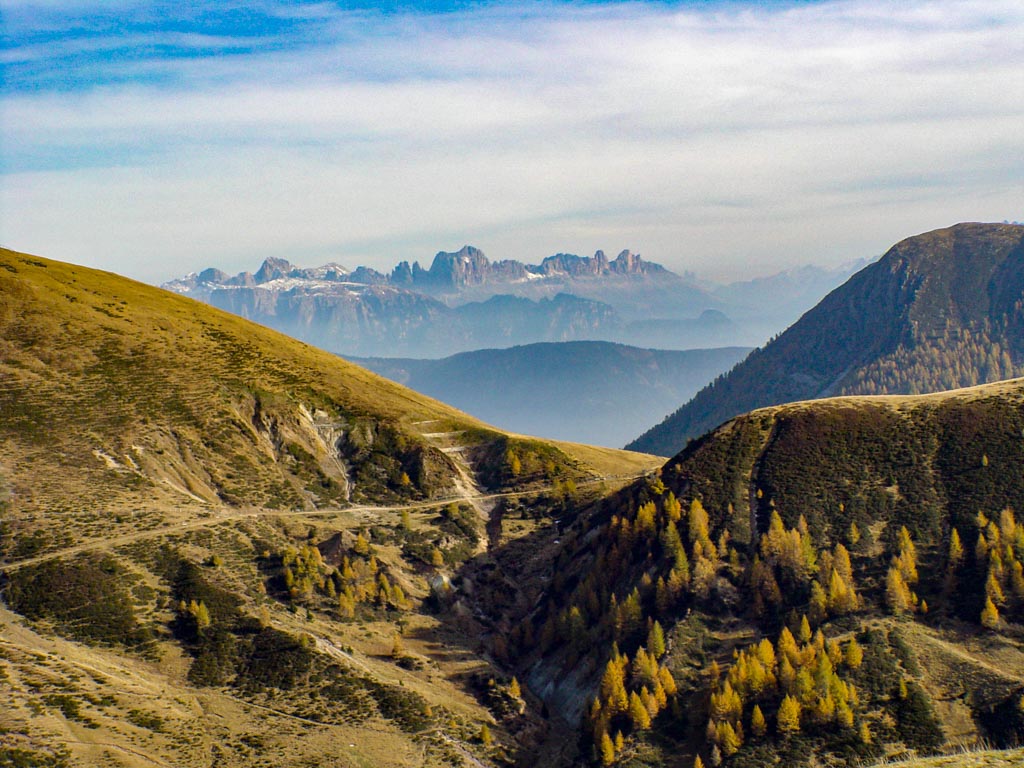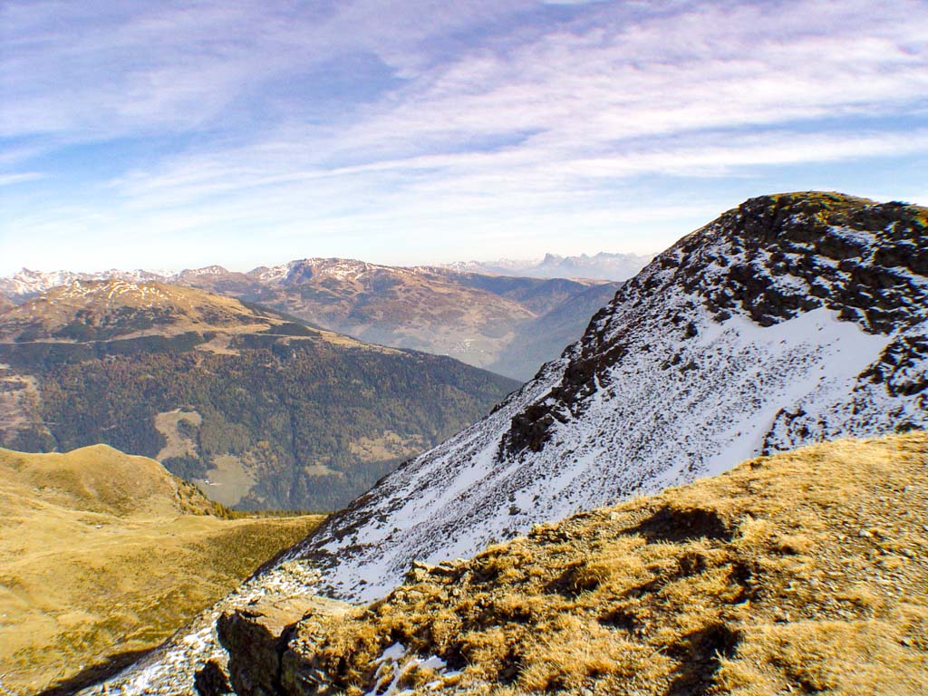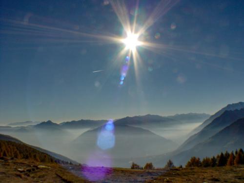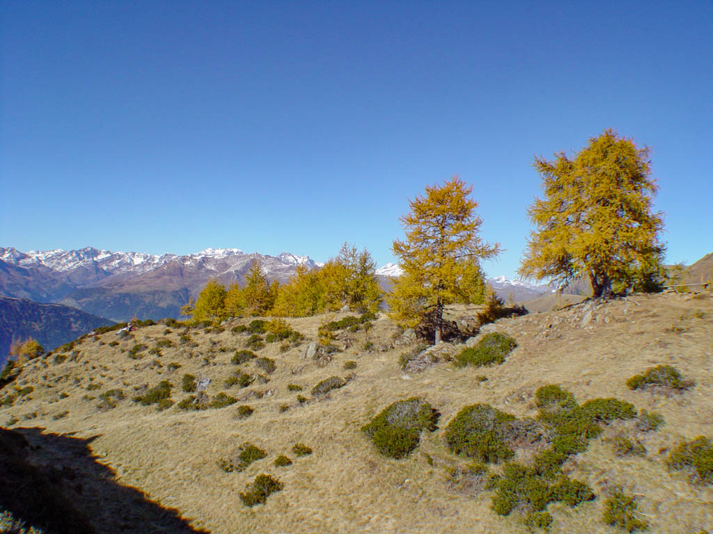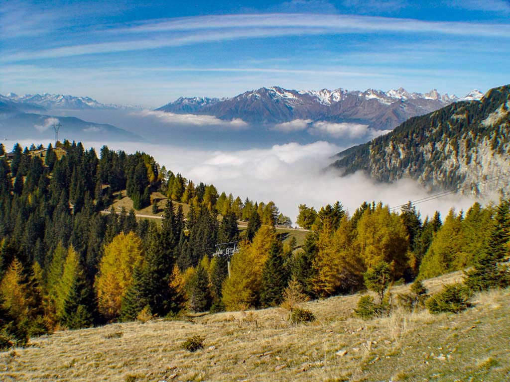 Eben verlaufende Waalwege im Mittelgebirge führen vorbei an Weinreben, Apfelwiesen und Kastanienhainen. In den höheren Lagen verlaufen gut markierte Wanderwege von Alm zu Alm und hinauf in das karge Hochgebirge.