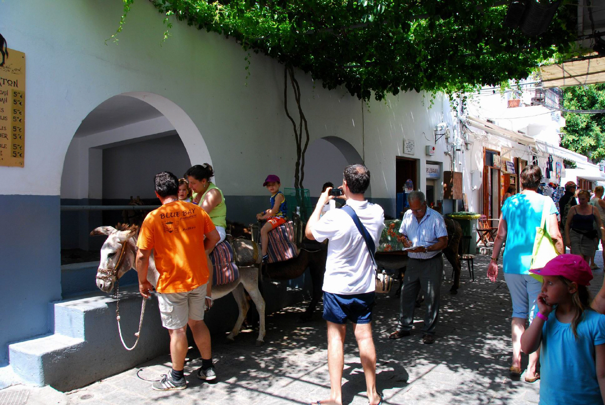 In der Saison (Mai bis Oktober) kommen täglich viele Tagestouristen mit Ausflugsbooten von Rhodos aus nach Symi. Diese beschränken sich meist auf einen Besuch des Klosters Panormitis und des denkmalgeschützten Hafens (Gialos).