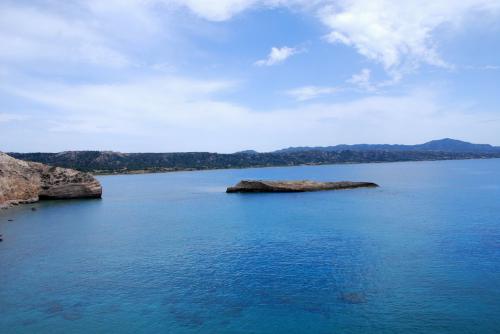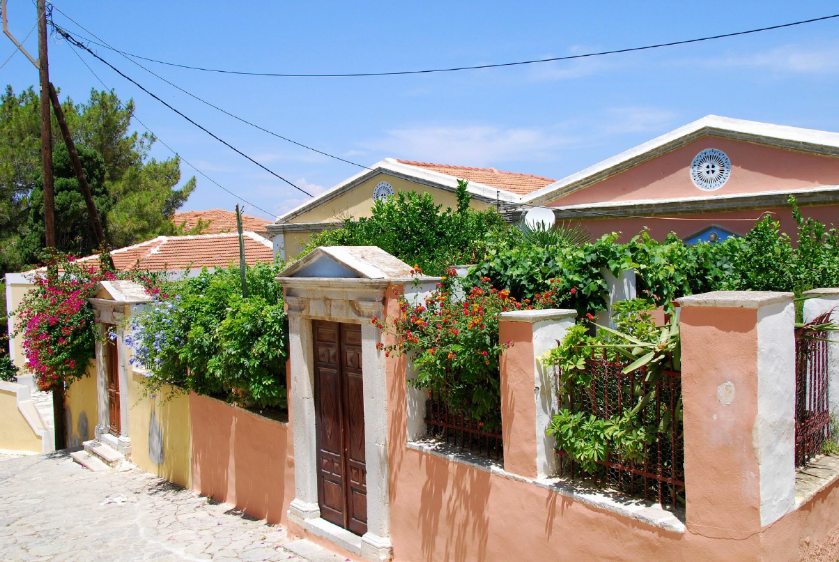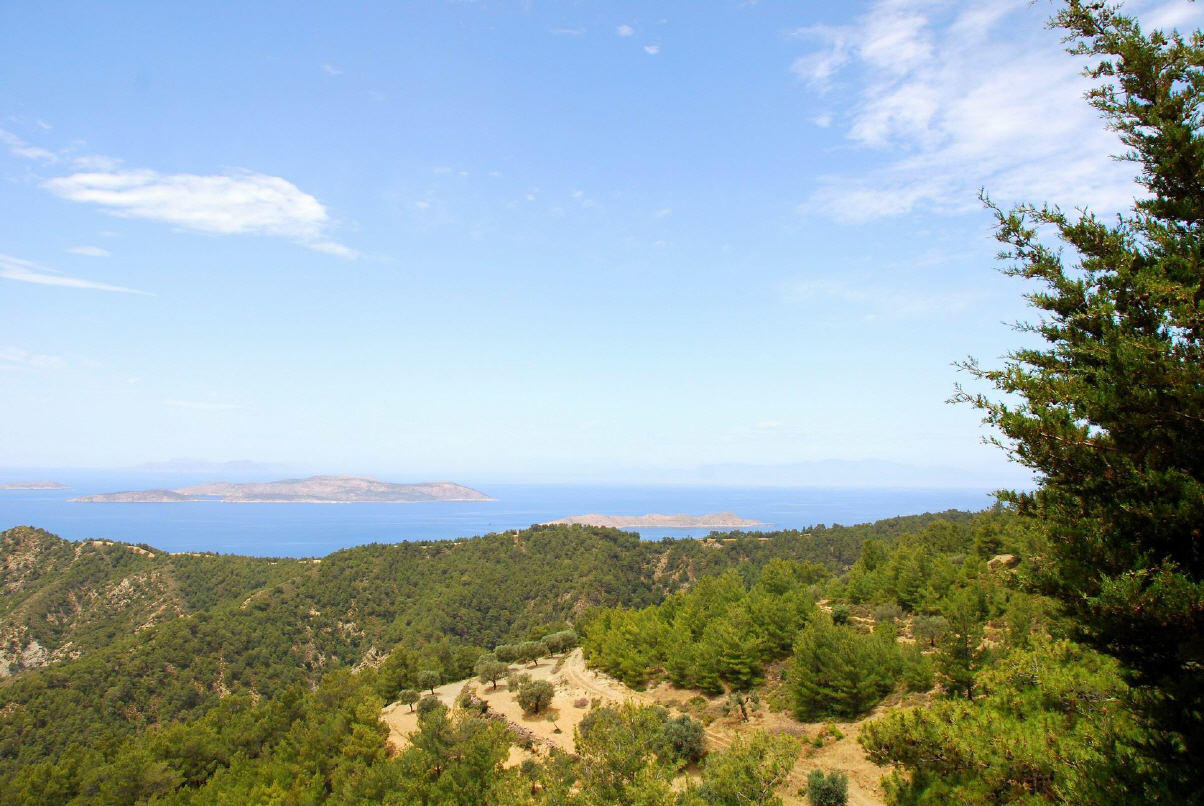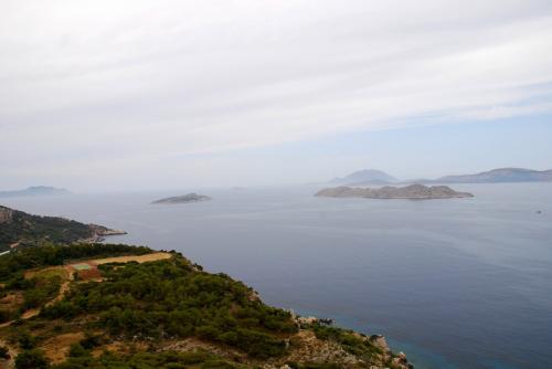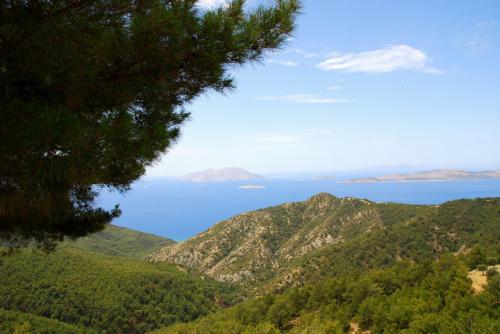 Symi hat eine sehr stark zerklüftete Küstenlinie und eine Länge von 11,5 km bei einer maximalen Breite von 9 km. Sie ist gebirgig und bis zu 617 m hoch.