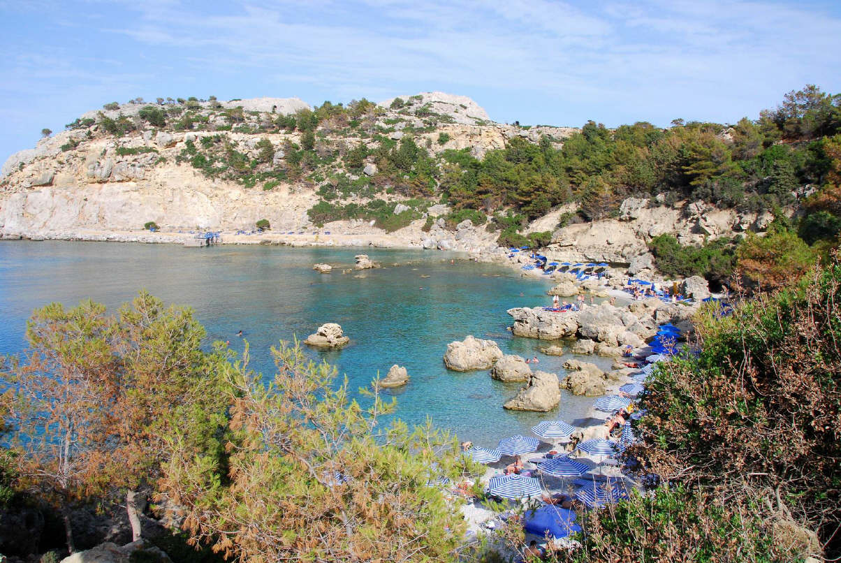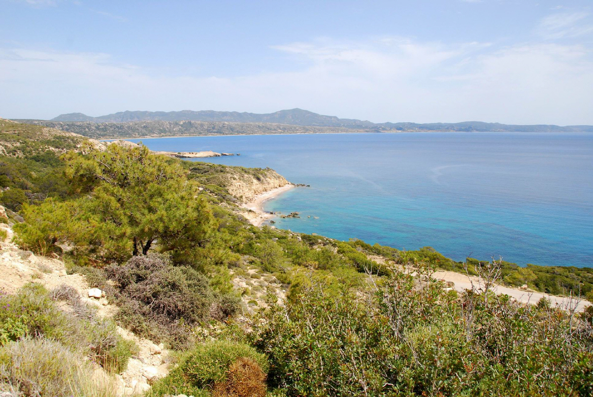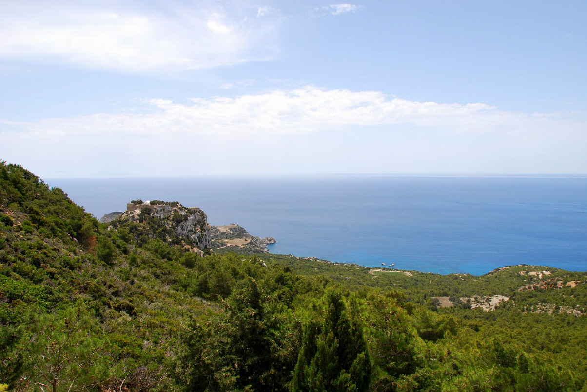 Rhodos liegt auf der Trennlinie zwischen der inselreichen Ägäis, von der es einen Teil des Südostrandes bildet, und dem inselarmen Levantischen Meer, beides Teilmeere des Mittelmeers. Rhodos misst nur 78km in der Länge und 38km in der Breite, ist rund 430km vom griechischen Festland und 18km von der Türkei entfernt.