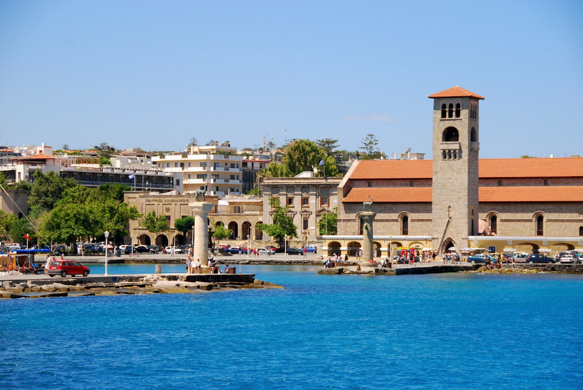 Rhodos ist eine Stadt an der Nordspitze der gleichnamigen griechischen Insel Rhodos. Sie ist seit der Verwaltungsreform 2010 Verwaltungssitz der Gemeinde Rhodos und bildet dort den gleichnamigen Gemeindebezirk Rhodos. Sie besteht aus einer modernen Neustadt und einer Altstadt, die vollständig von einer Stadtmauer umgeben ist. Über der Stadt finden sich auf dem Monte Smith die Reste einer antiken Akropolis. Es gibt zwei Häfen. Am Eingang des antiken Mandraki-Hafens stand angeblich der Koloss von Rhodos.