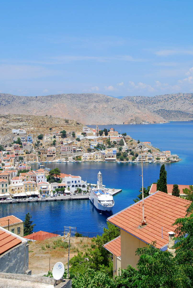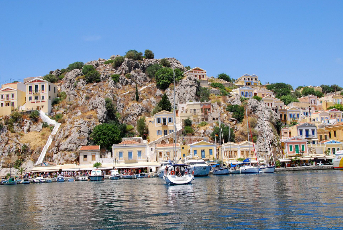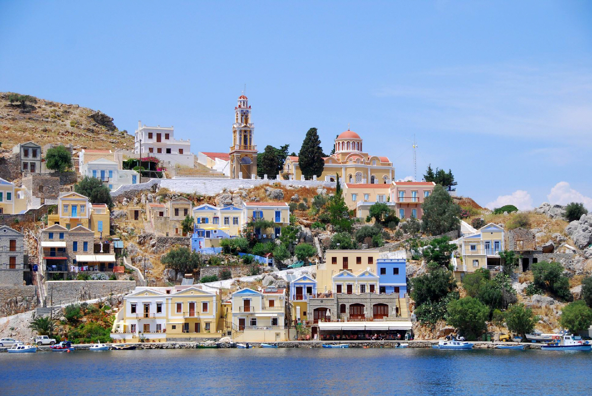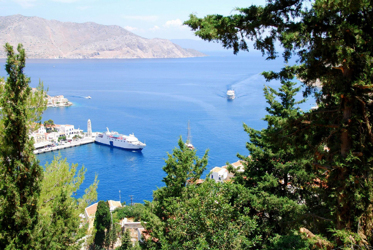 Symi liegt etwa 9 km westlich des türkischen Festlandes und 23 km nördlich der Insel Rhodos.