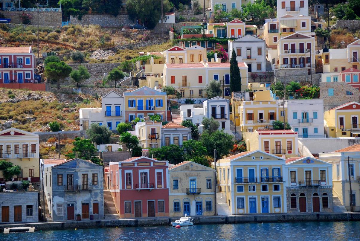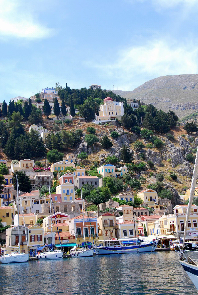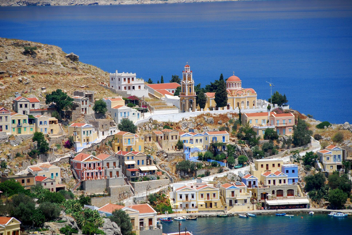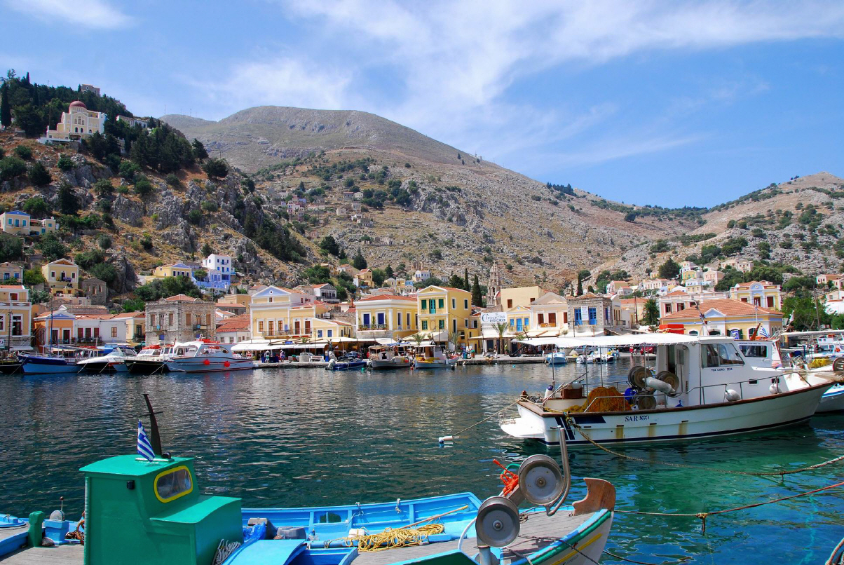 Symi liegt etwa 9 km westlich des türkischen Festlandes und 23 km nördlich der Insel Rhodos.