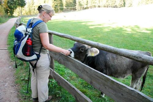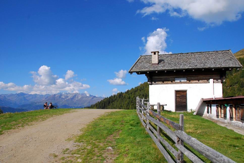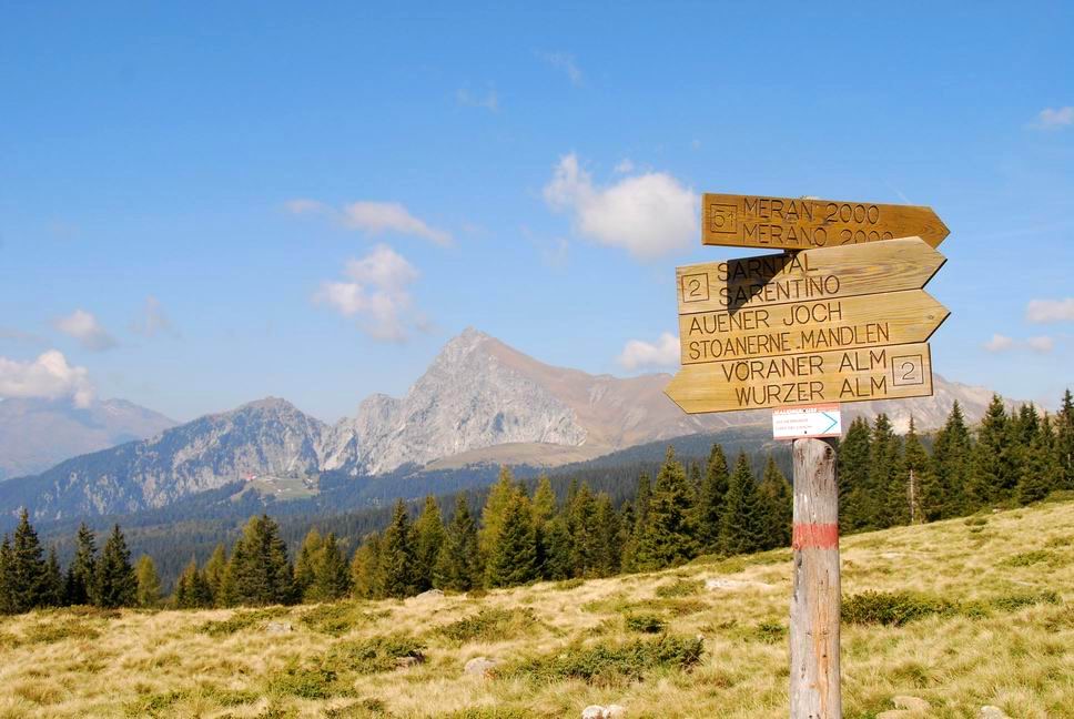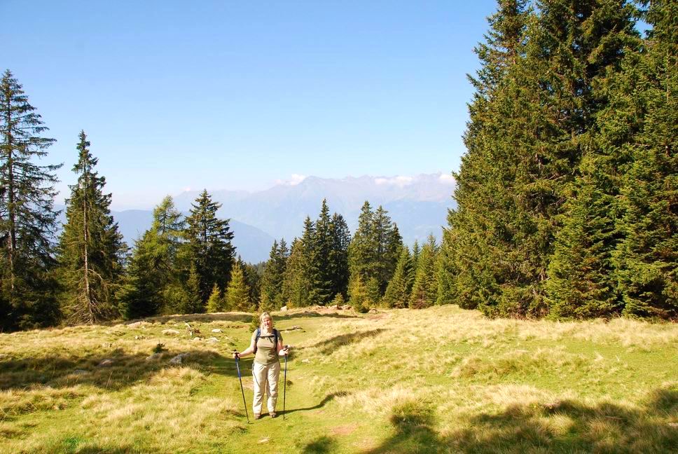 Für den letzten Tag hatten wir uns die anstrengenste Route aufgespart. Um 9:45 Uhr sind wir auf dem Parkplatz in Hafling zur Veraner Hütte aufgebrochen. Anfangs geht es über eine Stasse, doch nach ca. 2km ging es in den Wald. Bis zur Veraner Hütte geht es die ganze Zeit bergauf, und dass für 660 Höhenmeter. Nach knapp 3 Stunden waren wir dann oben. Nach einem leckeren Essen auf der Hütte hat Heike ein Nickerchen gemacht und ich bin weiter zum Veraner Joch gewandert. Der Ausblick auf Meran 2000 mit seinen verschiedenen Bergspitzen war sehr schön. Nachdem ich wieder zurüch war, sind wir gemeinsam über die Leadner Alm zurück zum Parkplatz in Hafling gewandert. Um 17:30 sind wir dort angekommenn. Eine sehr anstrengende Route die viel Schönes zu bieten hat. Die Route hatte eine Gesamtstrecke von 16km, 660 Höhenmetern und eine Dauer inkl. der Pausen von ca. 7 Stunden.