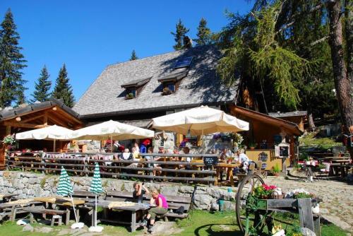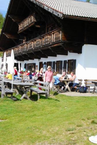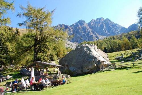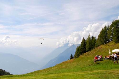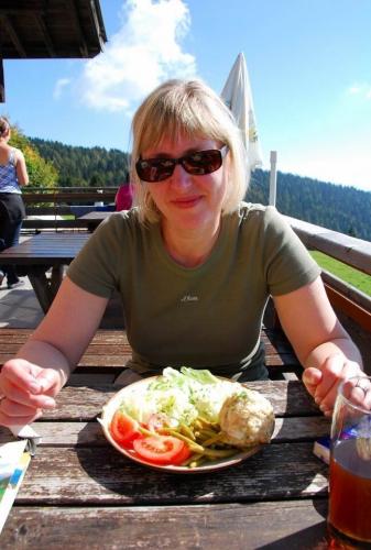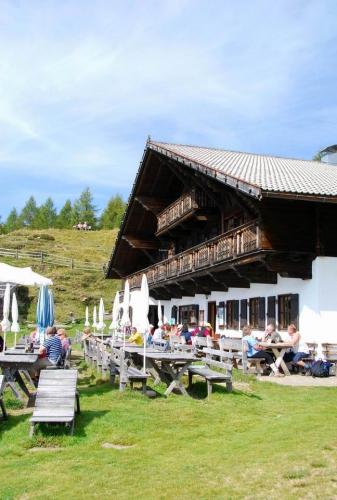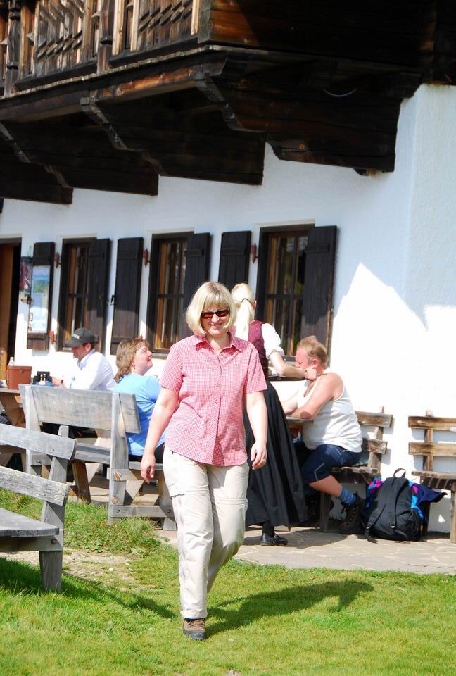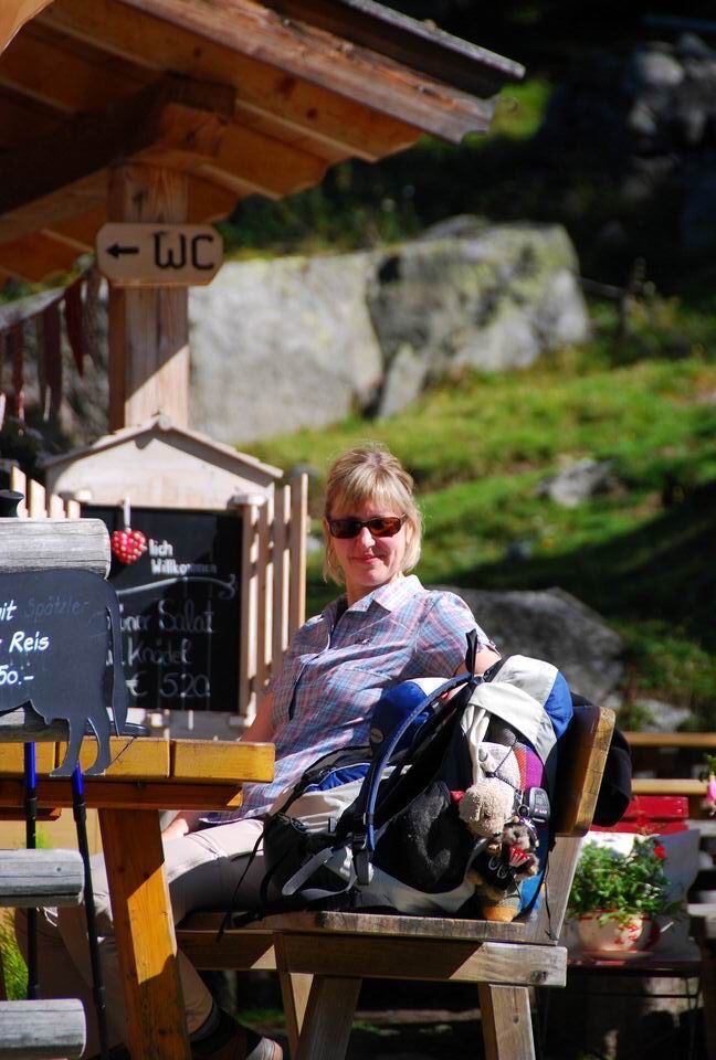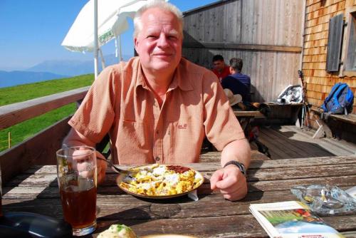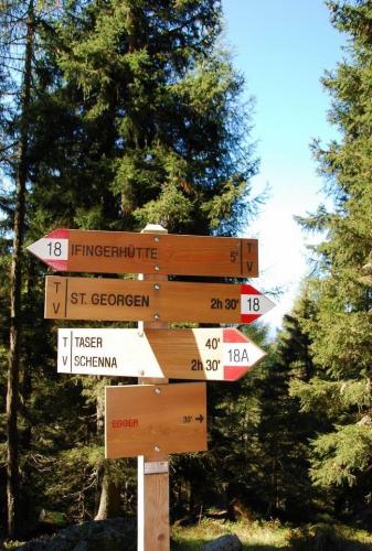 Da der Muskelkater weniger wurde sind wir um 10:30 Uhr zur Ifingerhütte aufgebrochen. Wir hatten wolkenlosen blauen Himmel und angenehme 20 Grad. Nach 1,5 Stunden waren wir schon oben angekommen. In der Ifingerhütte haben wir uns ausgeruht und Röstkartoffeln mit Spiegelei und Speck gegessen. Anschliessend haben wir 1,5 Stunden auf der Almwiese relaxed. So gegen 14:30 Uhr sind wir über die Gasthäuser Egger und Schnugger zur Taser Seilbahnstation aufgebrochen. Das Wetter hätte einfach nicht besser sein können.