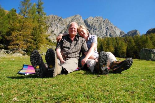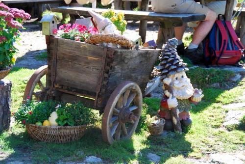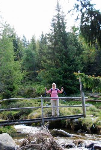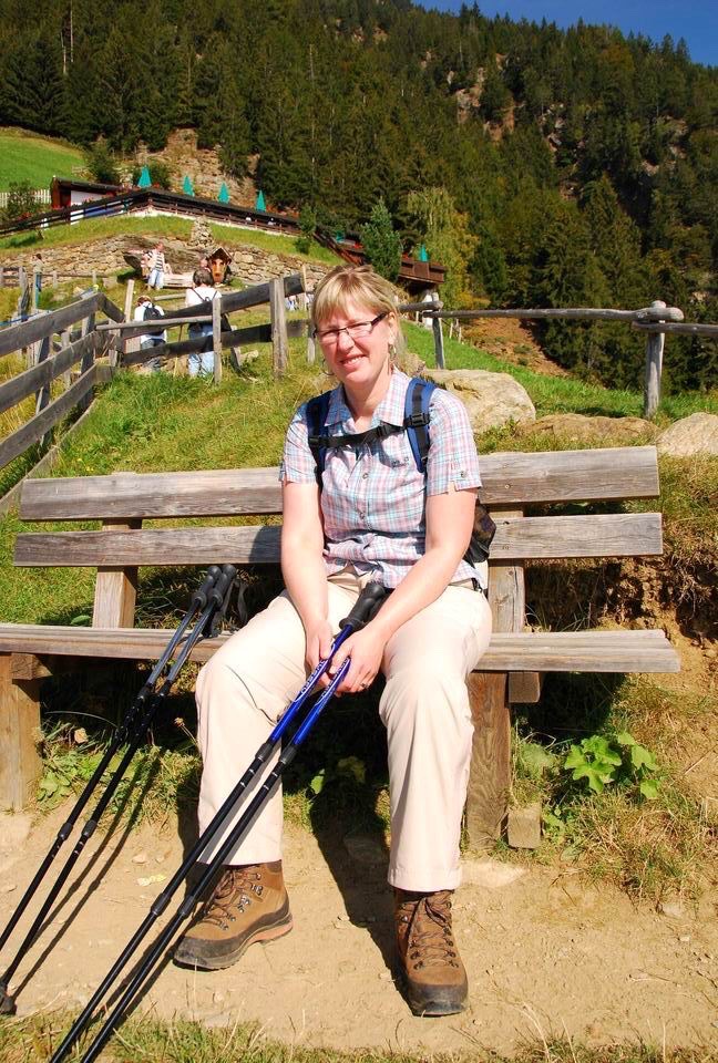 Trotz grosser Schmerzen sind wir um 10:30 Uhr in Verdins mit der Seilbahn zur Grube gefahren. Von dort sind wir zur Gompm Alm um dann weiter zur Mahd Alm zu wandern. Es ist ein steiler Anstieg auf dem Weg und wir waren froh an der Mahd Alm angekommen zu sein. Denn die Strapazen vom Vortag haben ihre Spuren hinterlassen. Nach einer Brotzeit sind wir dann auf direktem Weg Richtung Grube gewandert um dann möglichst schnell zu Tal zu gelangen um dann noch schneller mit dem Auto zurück zur Unterkunft zu gelangen. Über Eines waren wir uns aber einig, Morgen wird eine Wanderpause eingelegt. Wir werden zum Gardasee fahren.
