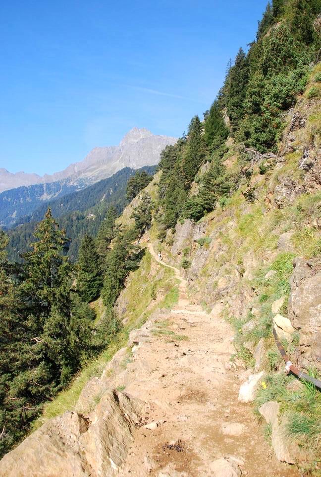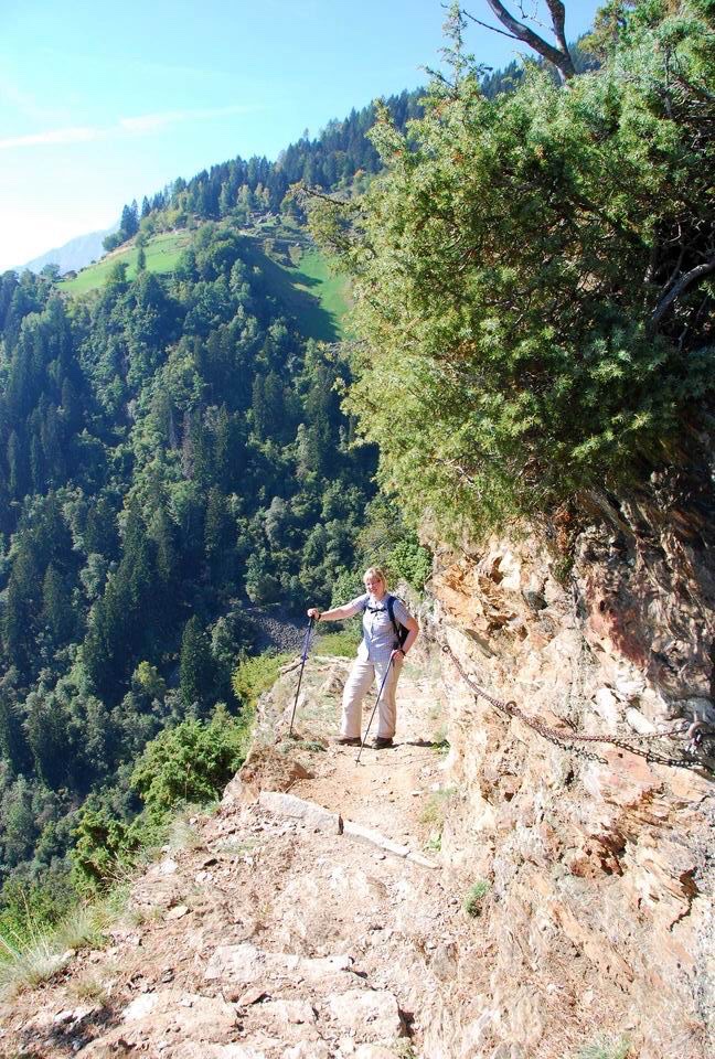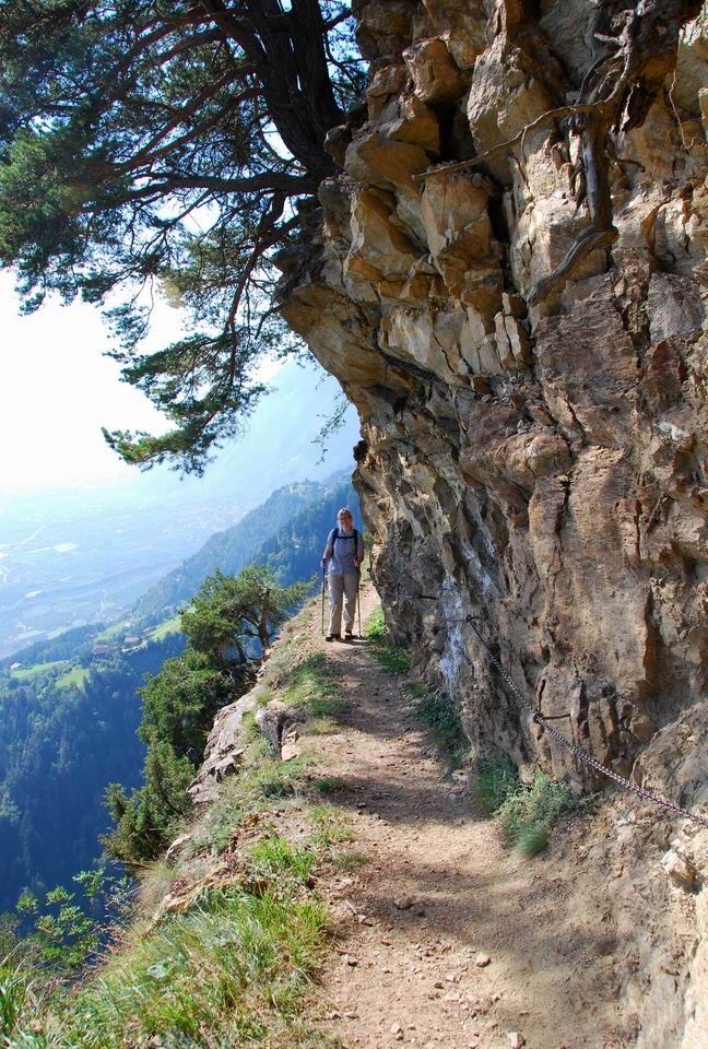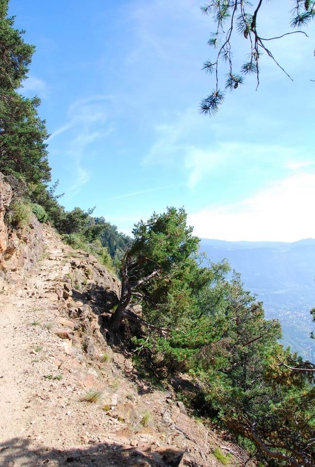 Um 10:45 sind wir in Dorf Tirol mit der Seilbahn hochgefahren und haben unsere Tour Richtung Leiter Alm begonnen. Über den schönen Meraner Höhenweg sind wir nach ca. 70 Minuten dort angekommen. Nach einem leckeren Apfelstrudel sind wir durch den Wald zum Velauer Felsenweg für Schwindelfreie aufgebrochen. Der Waldweg hat sich durch starke Baumrodungen stark verändert, sodass wir uns fast verlaufen hätten. Sind dann aber doch wieder auf den richtigen Weg gekommen. Der Weg über den Velauer Felsenweg zurück zur Seilbahn war wie der Weg durch einen Backofen. Es war einfach nur brütend heiß, aber wie immer sehr schön. An der Seilbahn angekommen, hatten wir Glüch, da die Seilbahn sofort Abfuhr.