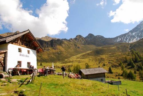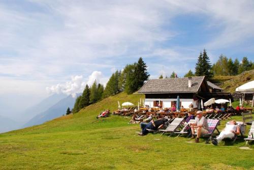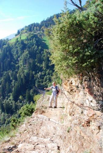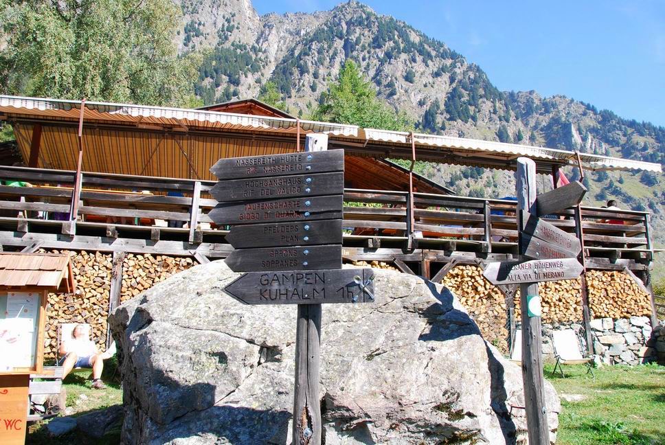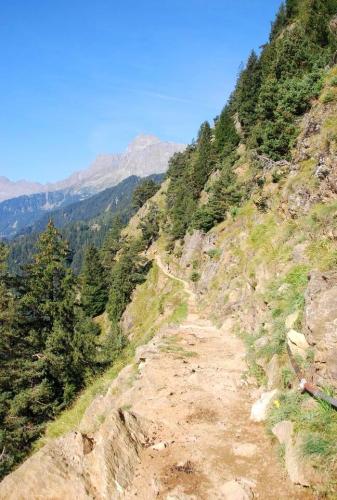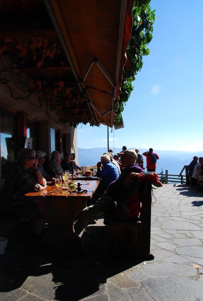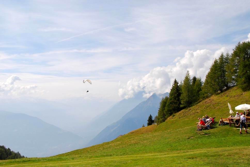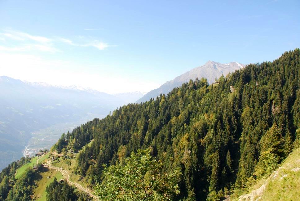Nach einem ausgiebigen und guten Frühstück um 8:30 haben wir dann unsere Rucksäcke gepackt und haben uns um 10:00 Uhr nach Saltaus aufgemacht. Dort angekommen sind wir dann mit der Seilbahn auf den Hirzer gefahren und dann weiter zur Staffelhütte gewandert. Dort haben wir Brotzeit gemacht und uns noch etwas in die Sonne gelegt. So gegen 14 Uhr sind wir dann Richtung Verdins und dann weiter nach Videgg aufgebrochen. Das ganze war eine Mords Tour. 7,5 Stunden Wanderzeit inkl. der Pausen und insgesamt 16km Wanderstrecke und ca. 1400m Abstieg. Zum Glück war der Bus in Verdins schnell da, um uns wieder nach Schenna zu bringen. Zu Fuss wär nicht mehr möglich gewesen. Um 17:30 Uhr waren wir dann erschöpft in unserem Zimmer angekommen.