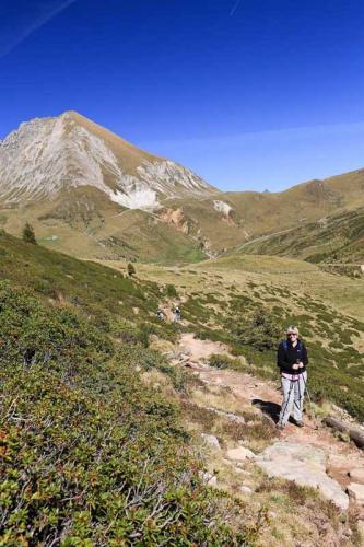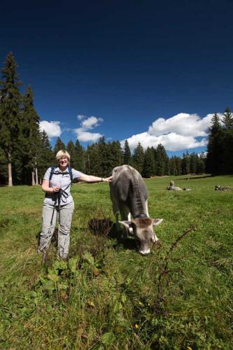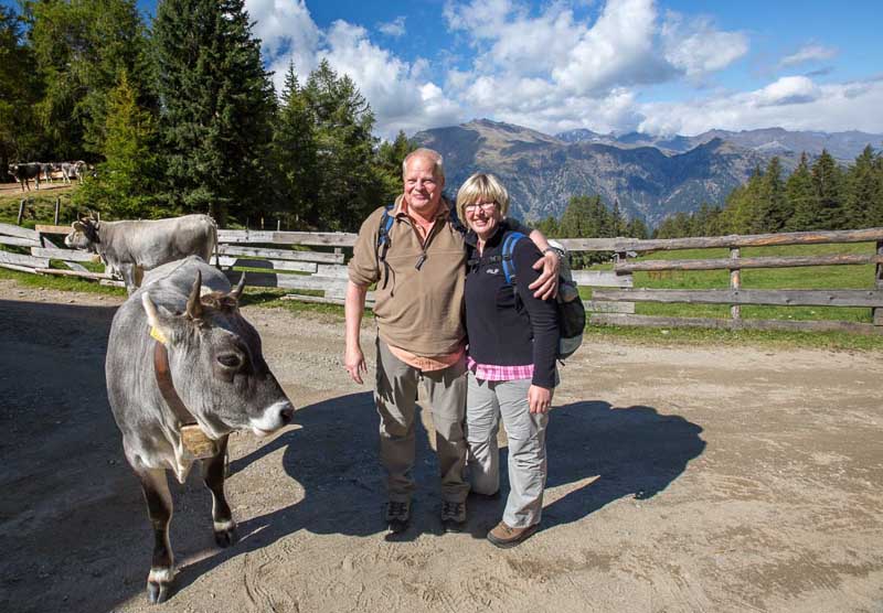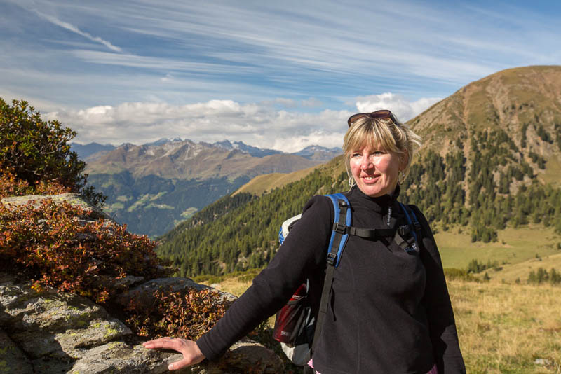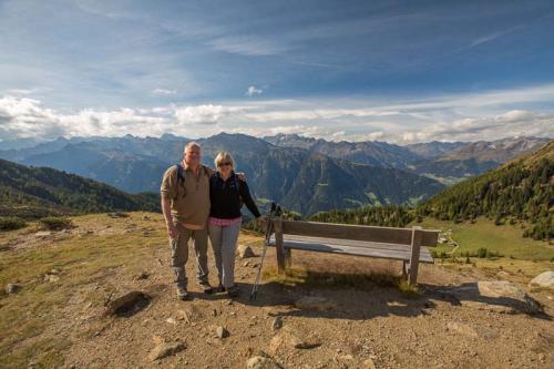 Bei sonnigem Wetter ging es von Verdins mit der Seilbahn und dem Sessellift zur Grube. Dort startete unsere Wanderung zur Gomp Alm, wo uns viele Kühe willkommen hießen. Von dort aus ging es steil bergauf zur Mahd Alm. Hier schmeckt der Kaiserschmarren besonders gut :-). Mit vollem Magen ging es dann wieder bergauf zum schönen Panoramablick und zurück Richtung Hizer Hütte und Staffel Hütte. Von dort aus war es nur noch eine halbe Stunde bis zum Sessellift und zurück zum Auto.
