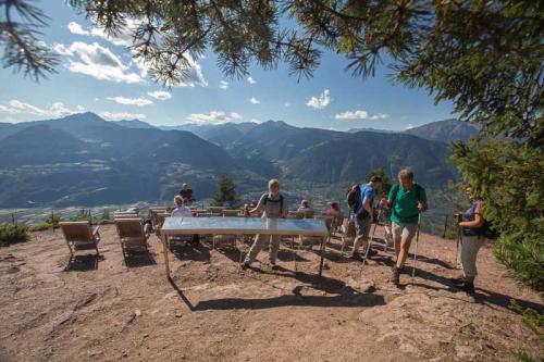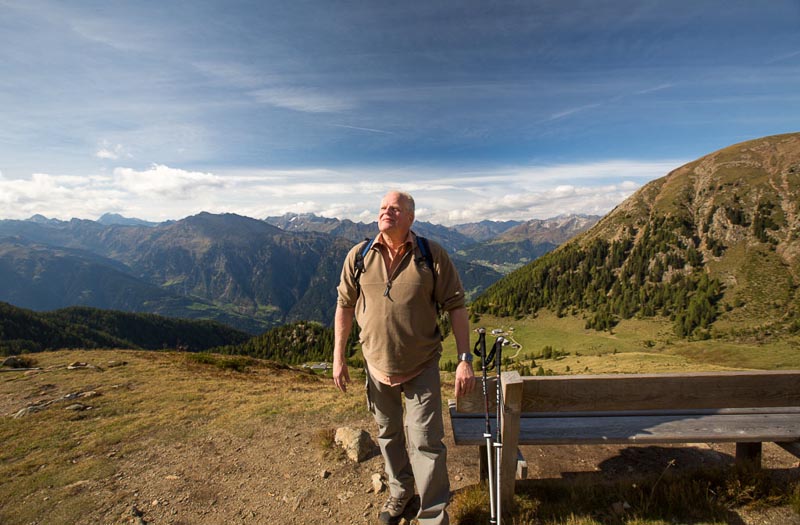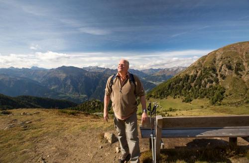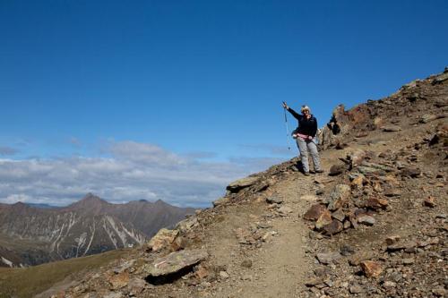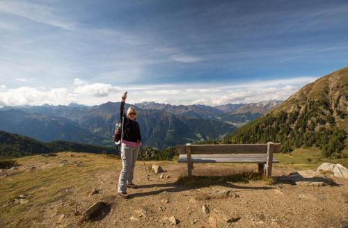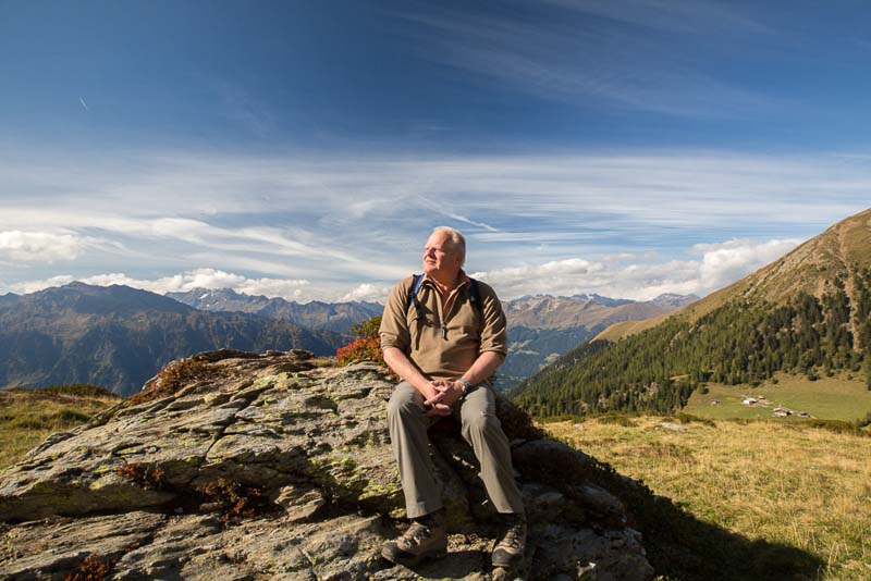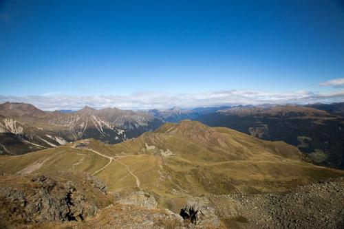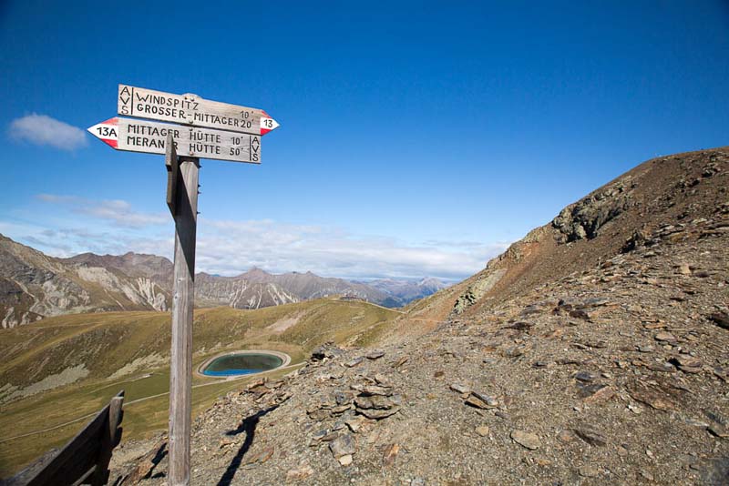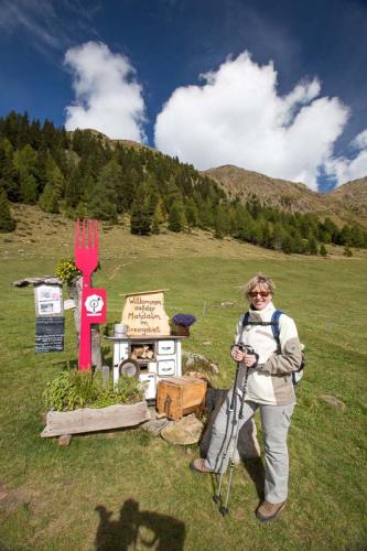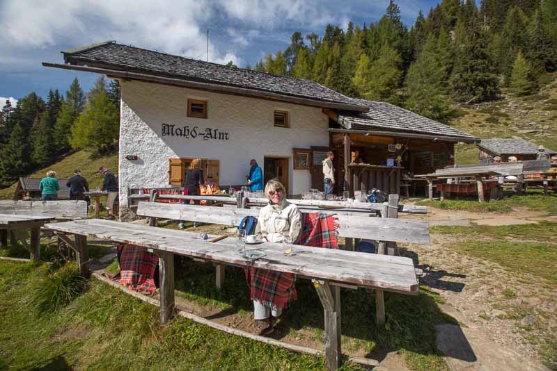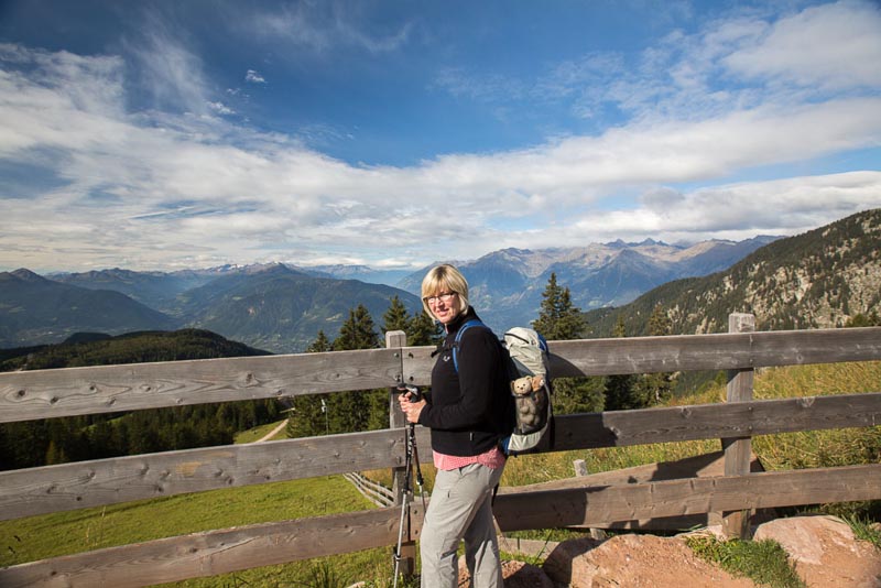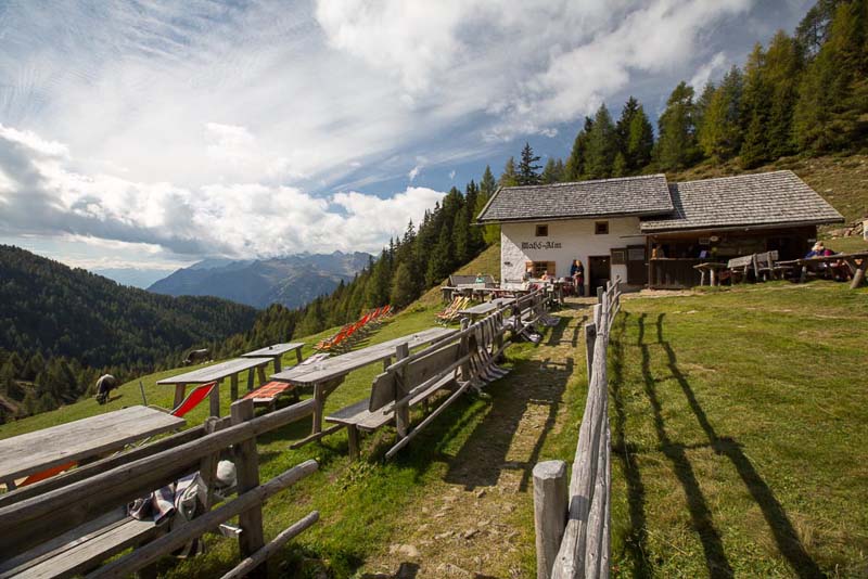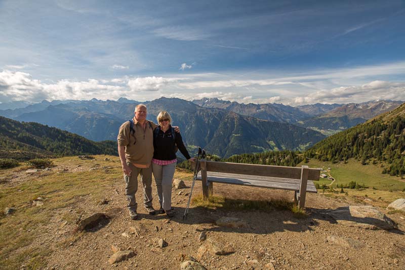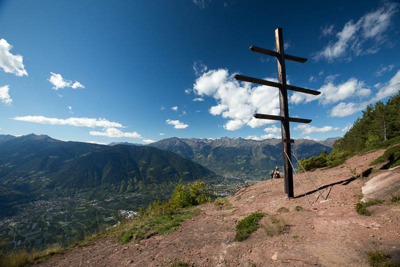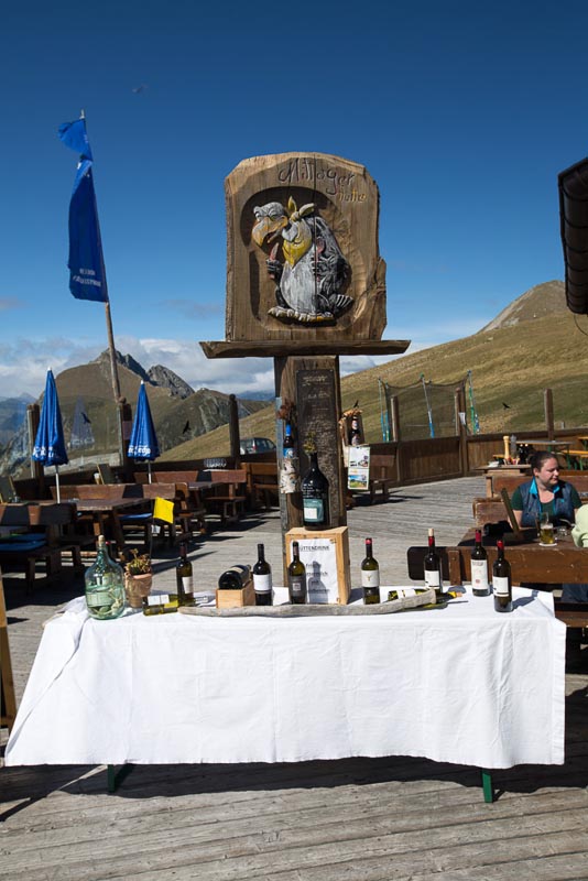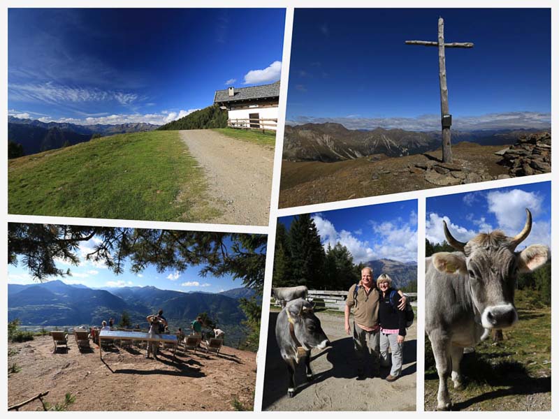 Das Wetter war perfekt und wir konnten hoch hinaus, was uns die Jahre zuvor schon einige Male verwehrt war. Von Naif ging es mit der Seilbahn nach Meran 2000 hoch. Von dort wanderten wir Richtung Meraner Hütte um dort mit dem Sessellift zum 2400m hohen Mittager zu fahren. Dort ist die Luft schon reichlich kühl und dünn. Oben angekommen haben wir die wunderschöne Mittager Hütte besucht. Zum Essen war es leider noch zu früh, aber die Gerichte sahen sehr lecker aus. Beim nächsten Mal müssen wir die Tour anders planen. Von dort aus ging es zum Mittager Gipfelkreuz. Dies war etwas anstrengend aber der Ausblick entschädigte mehr wie genug. Nach dem atemberaubenden Alpenpanorama sind wir dann zur Kesselberg Hütte abgestiegen wo wir Rast machten und lecker gefuttert hatten. Jetzt zog sich der Himmel langsam zu und wir sind dann wieder zurück zur Meraner Seilbahn. Es war ein sehr schöner Tag.