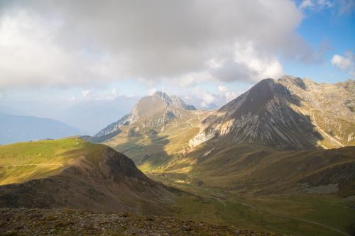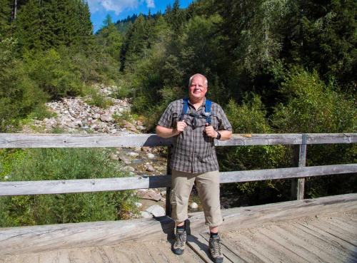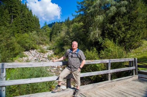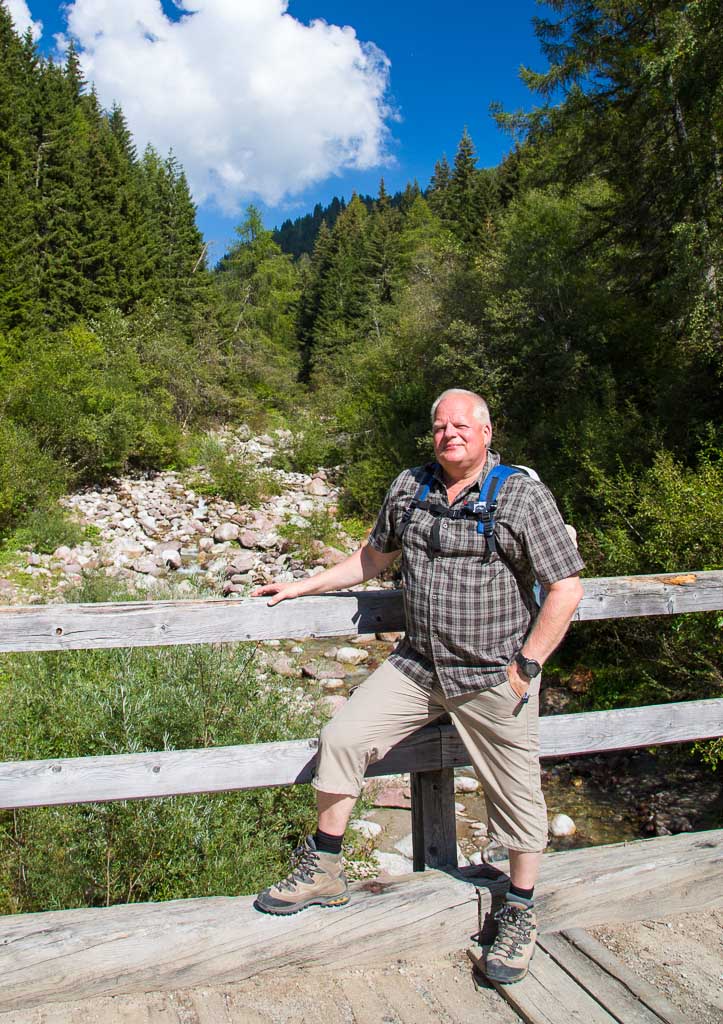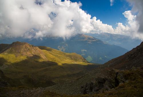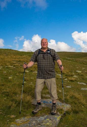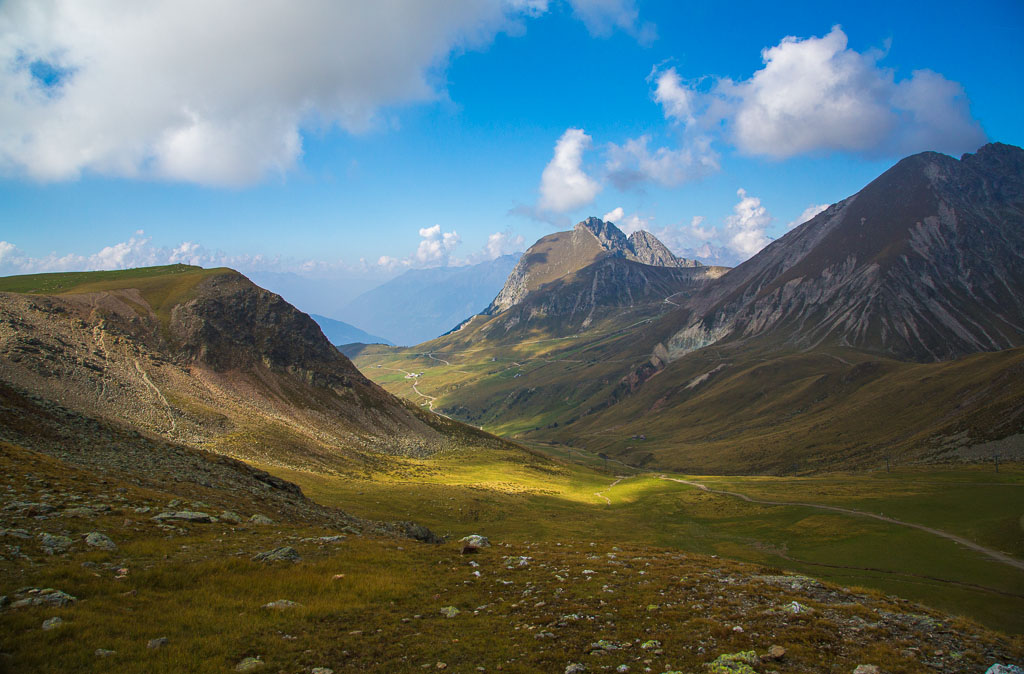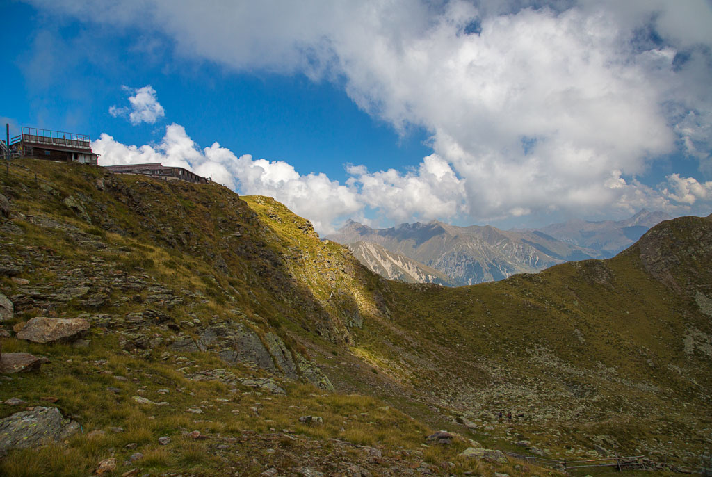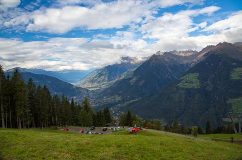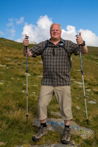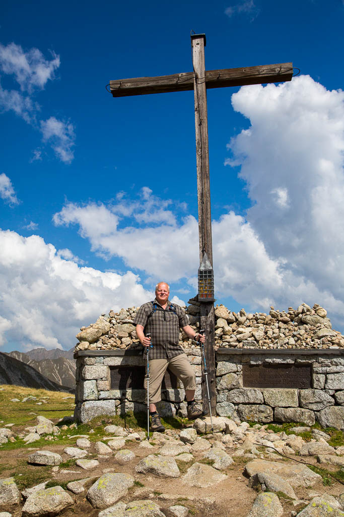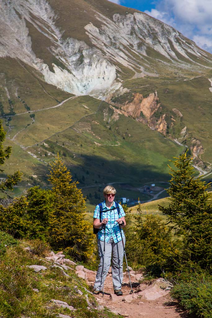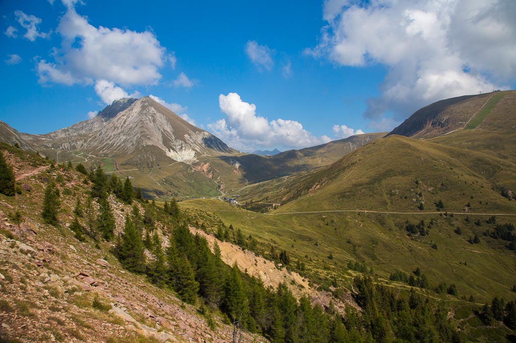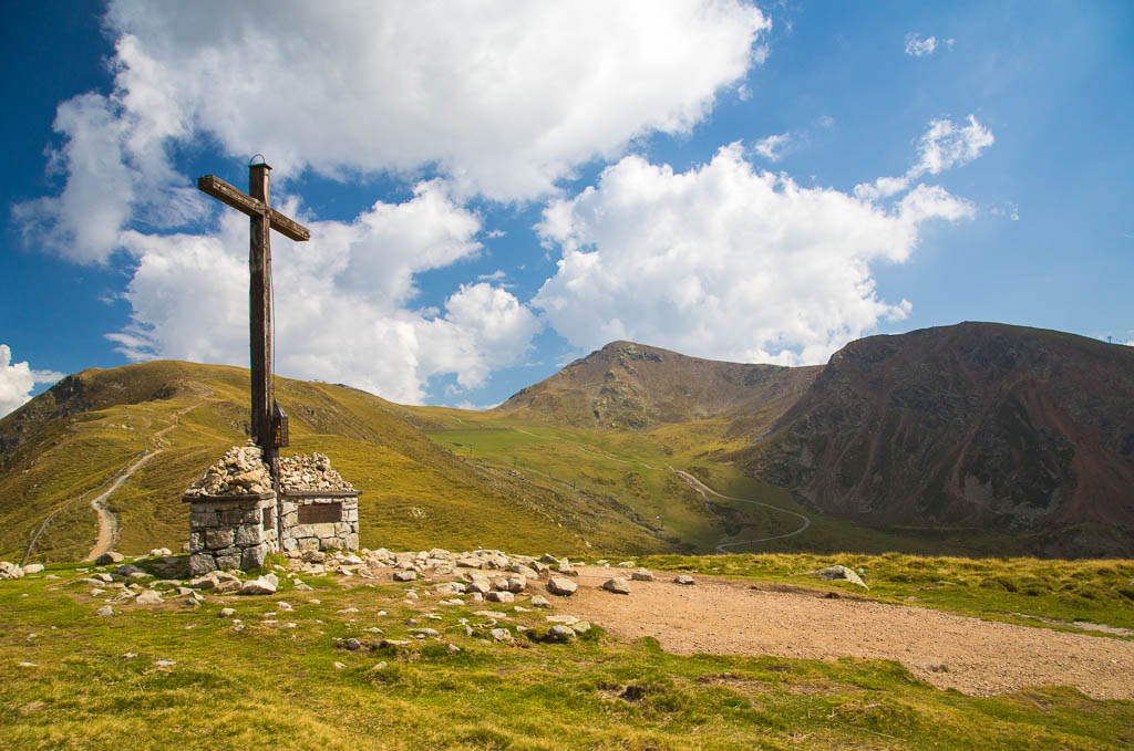 Mit der Seilbahn ging es zum Meran 2000. Von dort ging es einige km zum Sessellift, der uns zum Mittager führte. Dann ging es weiter über eine schöne Wiese zum Gipfelkreuz auf 2400m. Beim Abstieg machten wir Rast auf der Kesselberg Hütte, wo ich mein durchgeschwitztes Hemd trocknen konnte. Weiter ging es abwärts zu vielen schönen Aussichtspunkten und letztlich wieder zur Seilbahn Station. An diesem Tag betrug die Tour 13km und hatte einen positiven Höhenunterschied von 300 Metern.