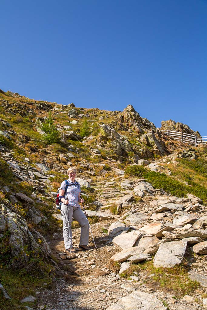 Von Falzeben sind wir mit der Umlaufbahn zur Bergstation gefahren. Dann ging es weiter zur Meraner Hütte und weiter zum Kreuzjoch. Vom Kreuzjoch aus ging es dann bergab an einigen Almen vorbei, wobei uns eine davon zum Kaiserschmarren eingeladen hatte. Zum guten Schluss gab es noch einen Schnaps aufs Haus. Von dort aus war es noch ca. eine Stunde zum Parkplatz in Falzeben. Die Tour Betrug 14km und hatte einen positiven Höhenunterschied von 330 Metern. Abends waren wir dann noch in Kaltern bei Gert und verlebten einen schönen Abend.