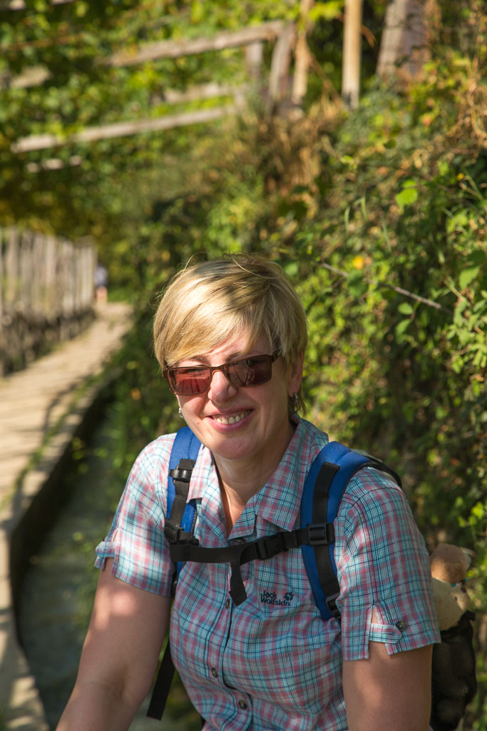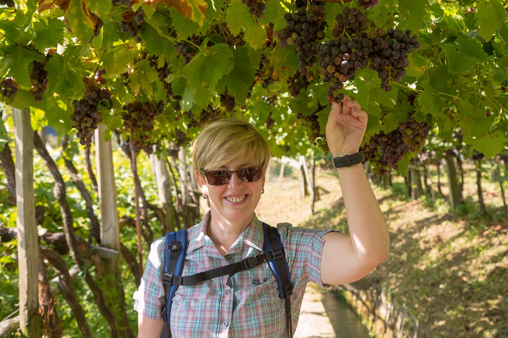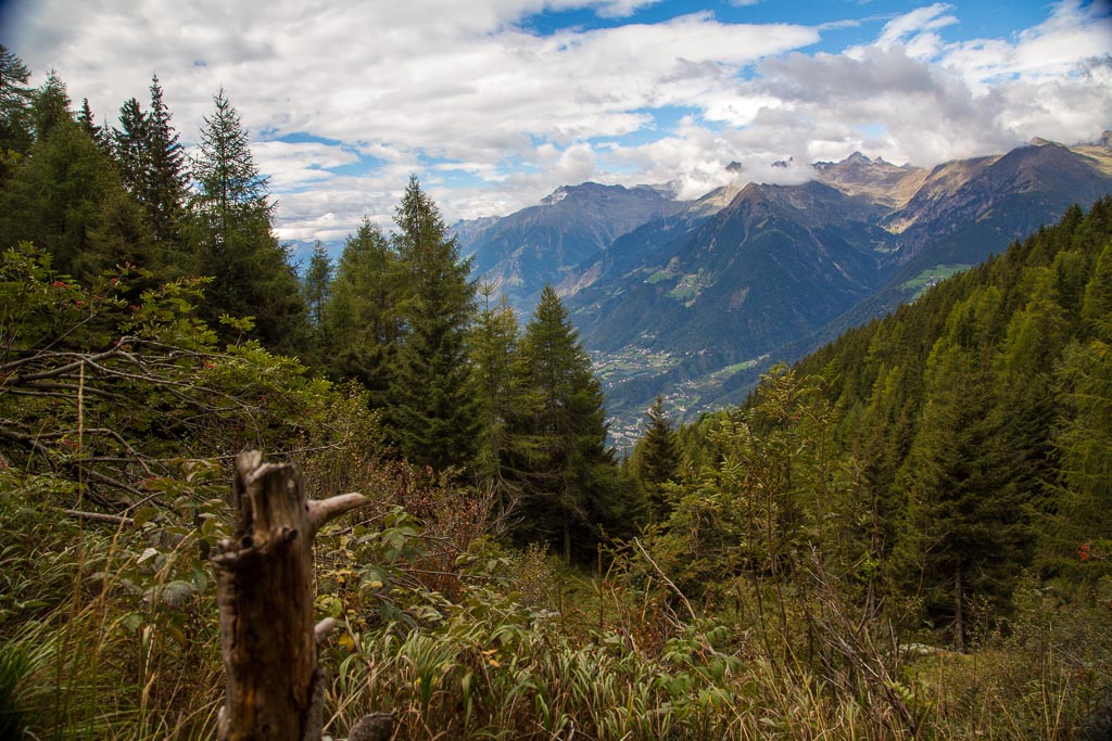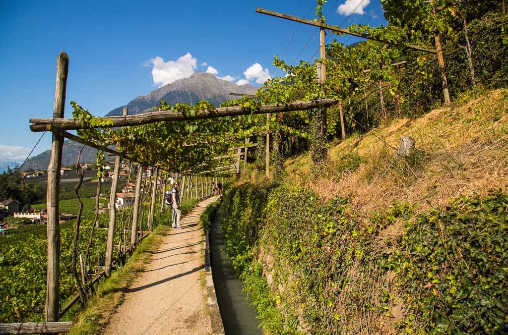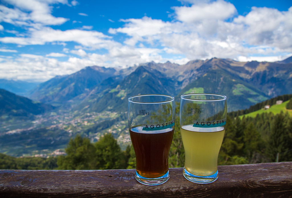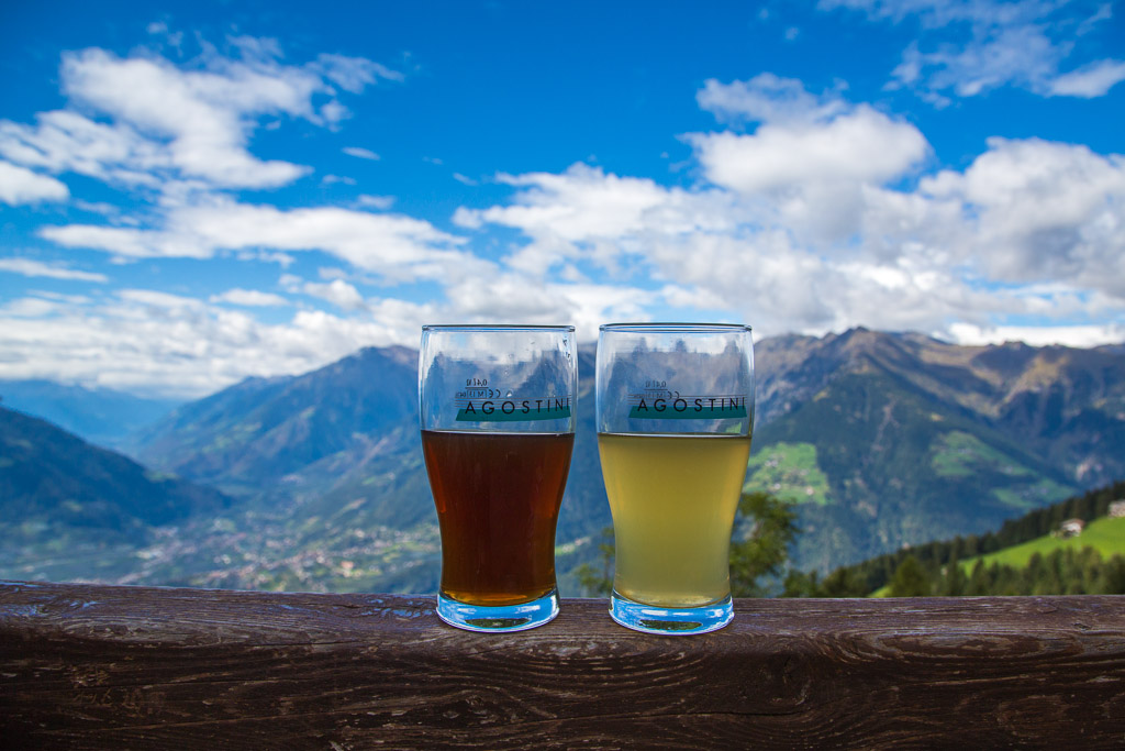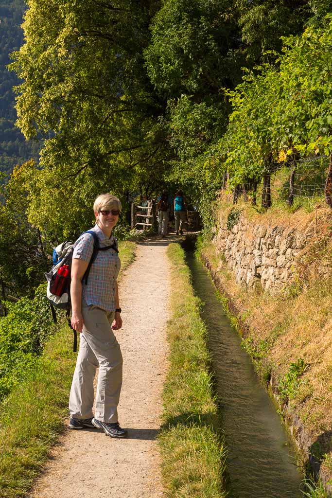 Am ersten Tag wollten wir es etwas langsamer angehen lassen, zumal es am Nachmittag Gewittern sollte. So sind wir nach Algund gefahren. Über den Algunder Waalweg sind wir nach Töll gewandert und von dort über den Marlinger Waalweg zur Brauerei Forst. Nach einer kleinen Stärkung ging es dann zurück nach Töll und erneut über den Algunder Waalweg zum Auto zurück. Auf dem Rückweg blitze und donnerte es schon und als wir uns in unserem Zimmer ausruhten, fing es stark an zu regnen. Unsere erste Tour hatte 15,5 km und einen positiven Höhenunterschied von 300 Metern.