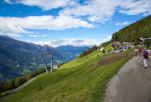 Bei schönem Wetter sind wir mit Seilbahn und Sessellift zur Grube gefahren. Dort haben wir unsere Hüttentour gestarten. Von der Grube zur Staffelhütte, über die Anhöhe zur Tanneralm und weiter zur Hinteregg Alm wo wir Rast machten um uns zu stärken. Danach ging es bergab bis zu einer schönen Wiese wo wir unsere Decke ausbreiteten und 45 Minuten Rast gemacht hatten. Danach ging es dann zur Gomp Alm und weiter zurück zur Grube. Trotz Sonnenschein fing es an zu regnen, und das gar nicht zu knapp. Im Tal angekommen hatte es aufgehört zu regnen, bzw. hatte es im Tal gar nicht geregnet. Die Tour war 11km lang und hatte einen positiven Höhenunterschied von 500 Metern.