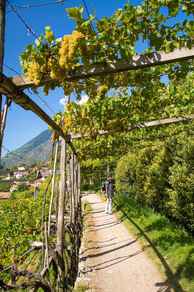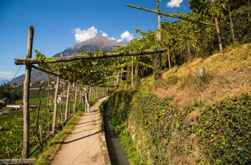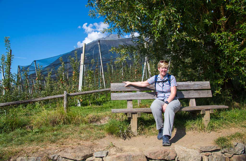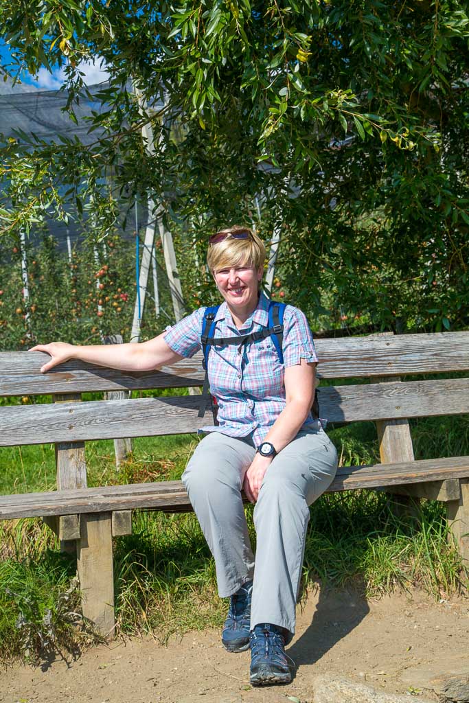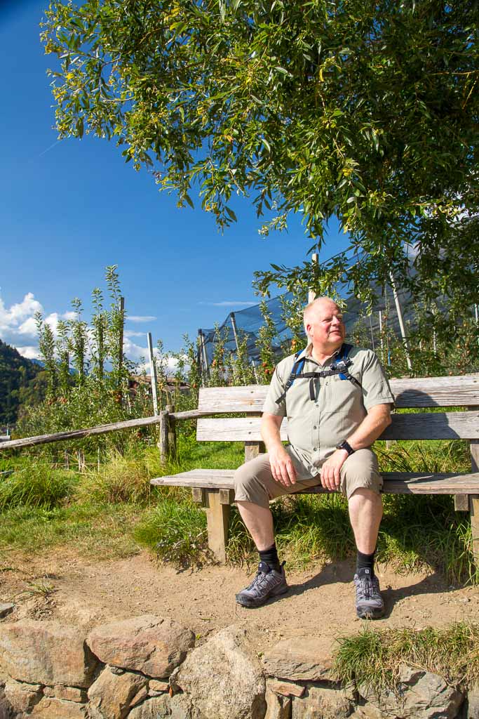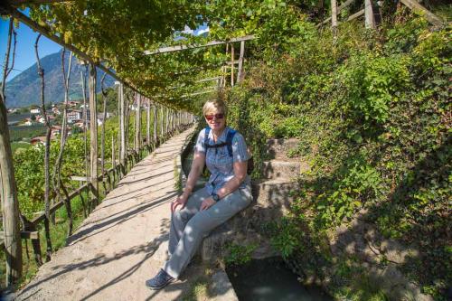 Nach einem Tag Wanderpause ging es wieder los. Wir sind von Schenna über den Maiserwaalweg nach Saltaus und weiter nach Meran gewandert. Auf dem Weg haben wir ganz viele Äpfel gesehen. In Meran sind wir dann mit dem Bus zurück nach Schenna gefahren, um dort in der Mayr Stubm ein Eis zu genießen. Die Tour hatte eine Länge von 14,5km und einen positiven Höhenunterschied von 100 Metern.