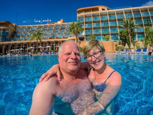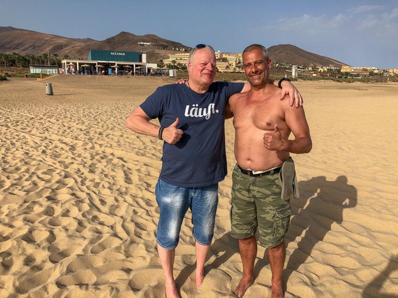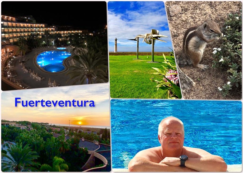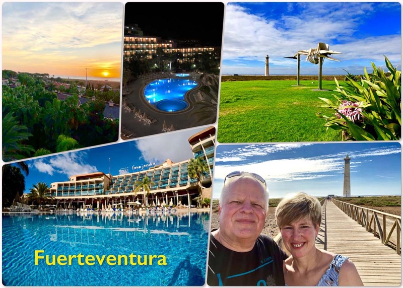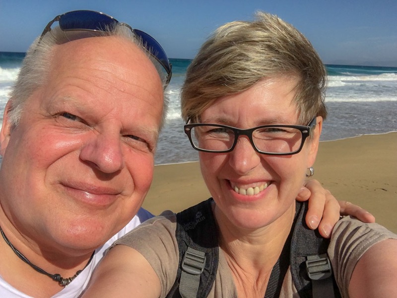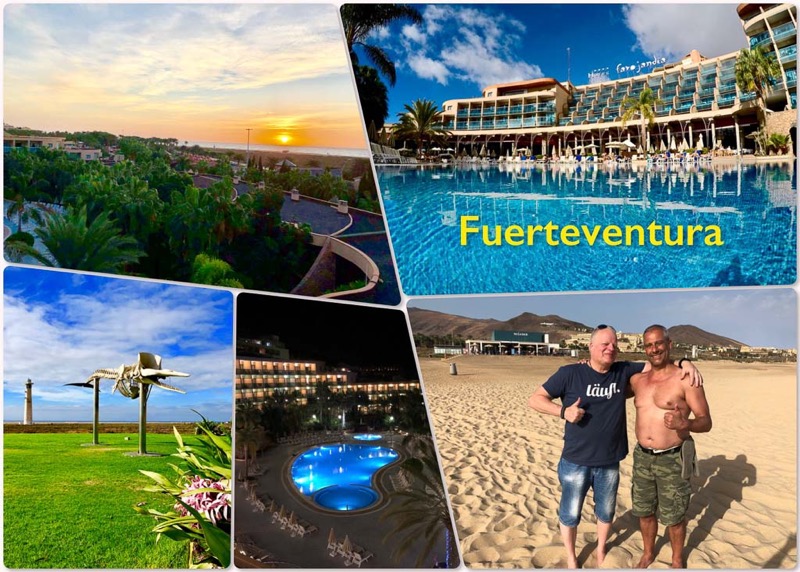 Nach einem stressigen 2017 und ausgefallenem Wanderurlaub, wollte wir zum Jahresende mal ein wenig abspannen. Was gibt es da besseres als die Seele in der Sonne der Kanaren bei 22 Grad baumeln zu lassen. So sind wir 14 Tage nach Fuerteventura ins Hotel Faro Jandia in der Nähe von Morro Jable geflogen, wo wir in der ersten Woche Frank & Michi getroffen haben. So konnten wir ein paar schöne Stunden zu viert verleben.