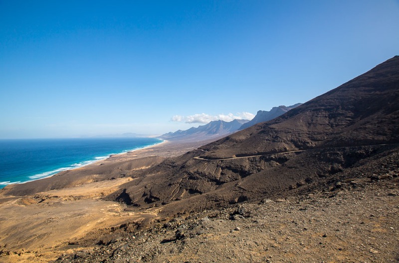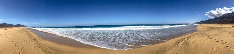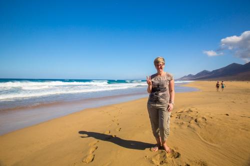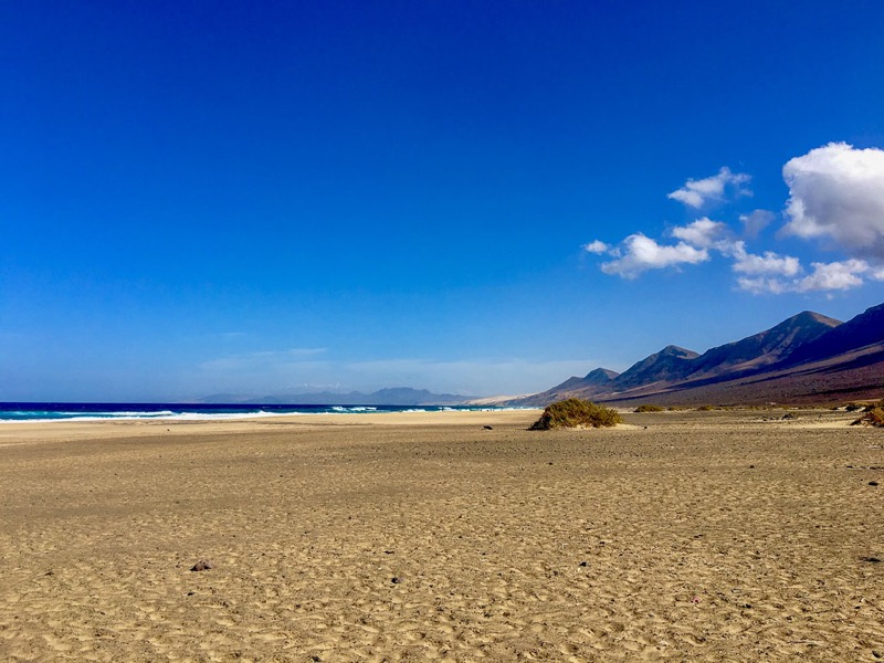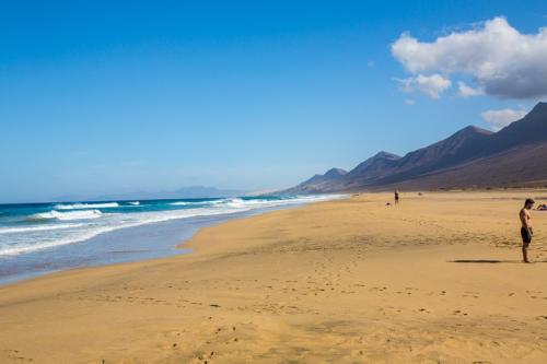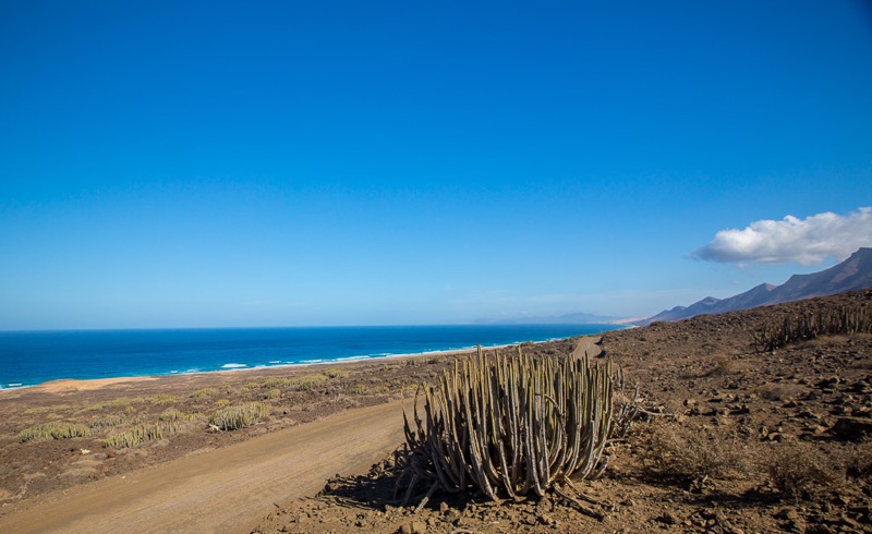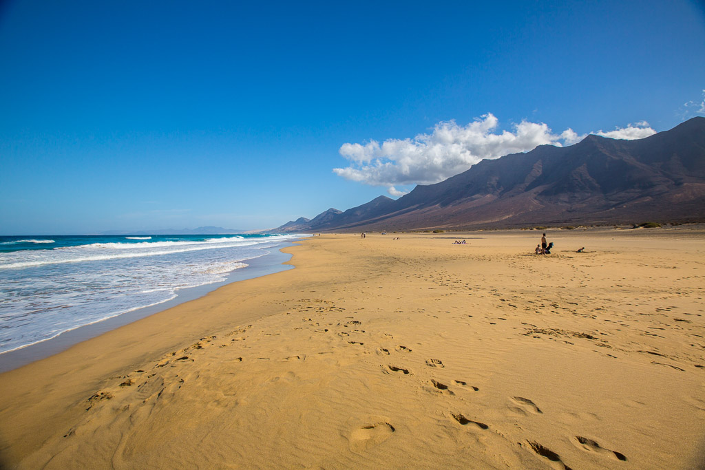 Fuerteventura ist zwar recht groß, aber in 3 Tagen hat man alles gesehen was man gesehen haben sollte. So sind wir am ersten Tag den Süden der Insel abgefahren. Als erstes haben wir den Hafen von Morro Jable besucht, um von dort aus weiter nach Cofete zu fahren. Die Fahrt führte uns über eine Schotterpiste und einige Serpentinen an den wunderschönen Strand von Cofete, der nie stark besucht ist und meist sehr hohe Wellen hat. Oberhalb des Strandes liegt die Villa Winter, der wir auch einen Besuch abgestattet hatten. Nach einer kleinen Pause sind wir dann wieder zurück und zum südlichsten Punkt von Fuerteventura gefahren, zum Faro de Punta Jandia. Da noch etwas Zeit war, sind wir auf dem Rückweg noch nach Costa Calma und haben die Lagune von Sotavento bestaunt, in der viele Kitesurfer unterwegs waren.