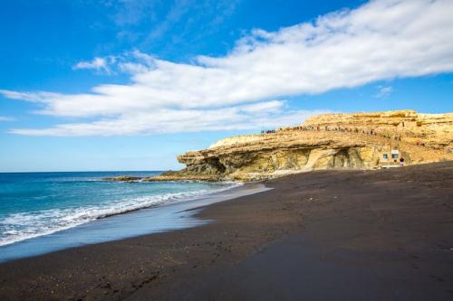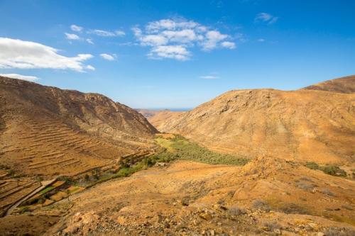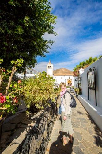 Der dritte und letzte Tag brachte uns in den Westen von Fuerteventura, welcher gänzlich anders ist wie der Norden und der Süden. Zuerst ging es zur Playa de Ajuy, was heutzutage touristisch wenig erschlossen ist. Und dies ist auch gut so, denn so bleibt der Ort idyllisch und romantisch. Besonders der schwarze Strand und die nahen Höhlen sind einen Ausflug wert. Weiter ging es ins Gebirge zum Mirador las Penitas, wo es sehr windig und kühl war. Da waren die kurzen Sachen etwas fehl am Platz. Nach zahlreichen Fotos und leichter Unterkühlung ging es wieder ins Tal nach Pajara wo eine kunsthistorisch bedeutsame Kirche steht. Ansonsten ist da nicht viel los. Abschließend ging es wieder ins Gebirge und über eine kurvenreiche und schöne Bergstraße mit tollen Ausblicken nach Betancuria. Einer der schönsten Orte der Insel, er liegt in einem von Bergen umschlossenem Tal mit knapp 500 Bewohnern.