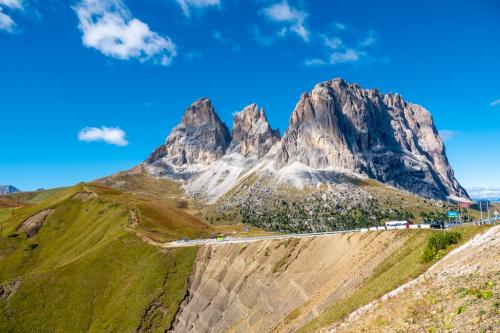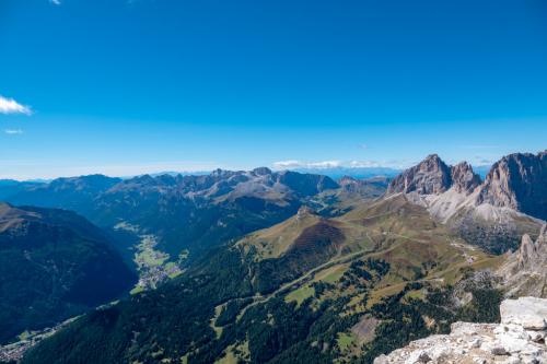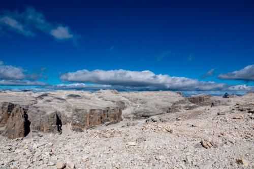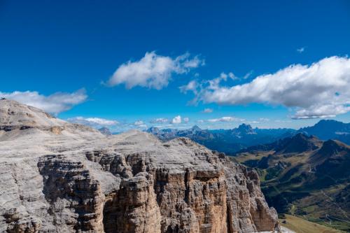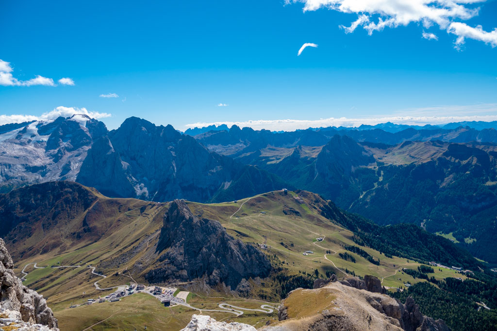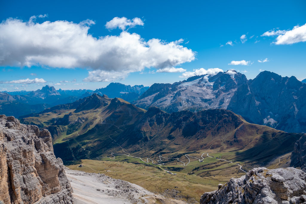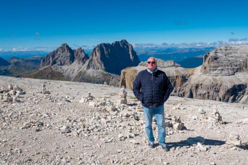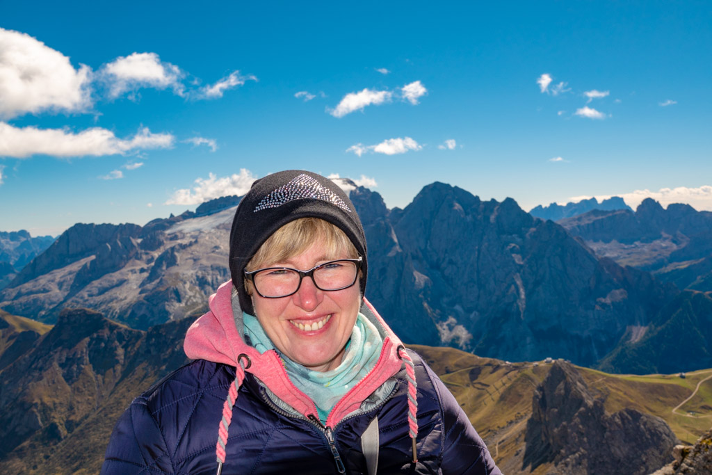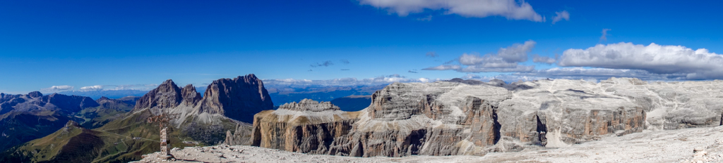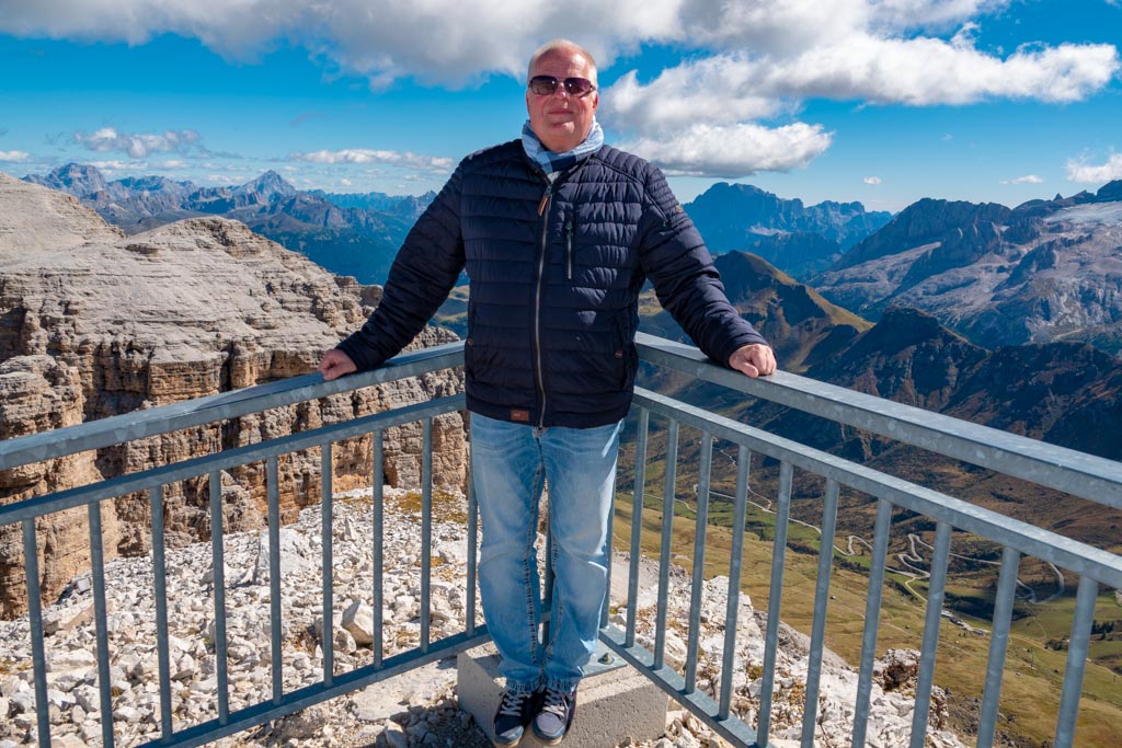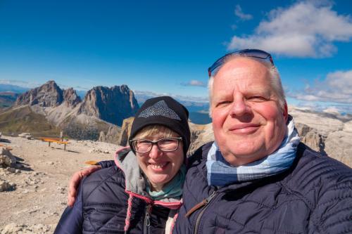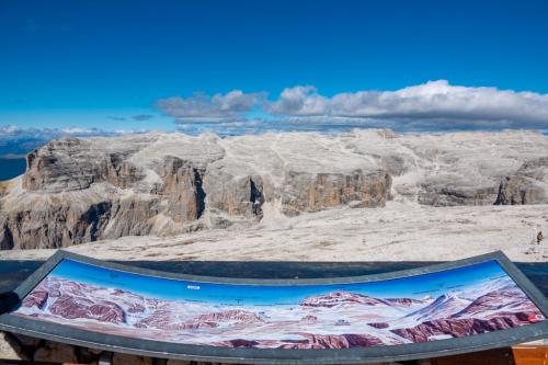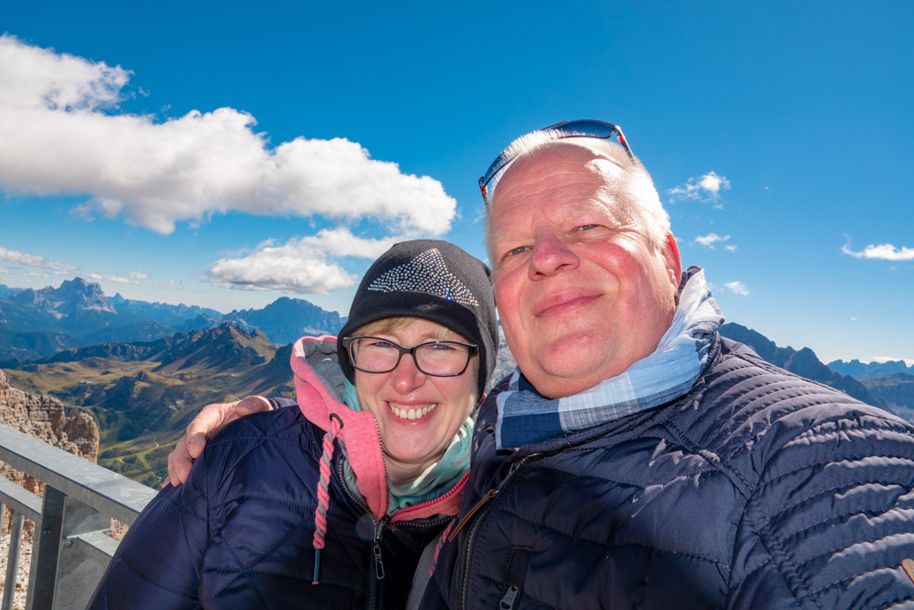 Nach dem gestrigen Halbmarathon wollten wir unsere Füße mal schonen und sind in die die Dolomiten gefahren. Es war eine schöne Tour über Corvara, das Grödnerjoch, Sellajoch, Pordoi Joch und den Falzarego Pass nach Cortina d‘ Ampezzo und wieder zurück nach Freienfeld. Auf den Passhöhen hatten wir nur 4 Grad, dennoch sind wir die ganze Zeit offen gefahren. Am Pordoi Joch sind wir noch mit der Seilbahn bis auf 2.950m hoch gefahren. Dort war es zwar sonnig, aber nur -1,6 Grad und sehr windig.