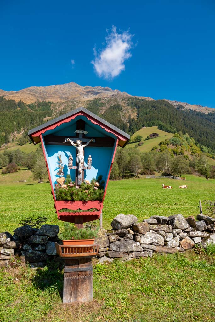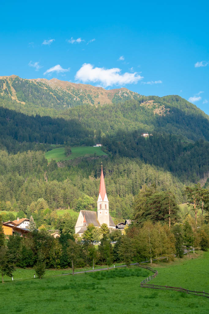 Eine schöne Wanderung von Mareit aus Richtung Ritnaun über die Berg Kirche Santa Maddalena und zurück über Bergwiesen nach Mareit. Ein gut 5 Stunden Rundweg mit 14,5km und 560 Höhenmetern. Aber keine Möglichkeit in einem Gasthof einzukehren. So haben wir auf der Bergkirche Santa Maddalena Brotzeit gehalten. Der Rückweg nach Mareit hat sich ganz schön gezogen.