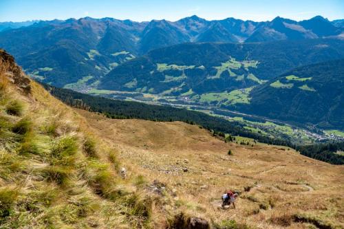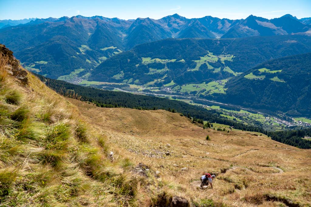 Heute ging es hoch hinauf auf den Rosskopf. Ganz anders wie erwartet war es gar nicht so kalt. Bei sommerlichen Temperaturen um die. 18 Grad ging es über die Vallmingalm und die Ochsenscharte zurück zur Bergstation. Das war eine ganz schöne Kraxelei mit 10km und 500 Höhenmetern. Aber der Ausblick war überwältigend. Leider konnten wir in keiner Berghütte einkehren.