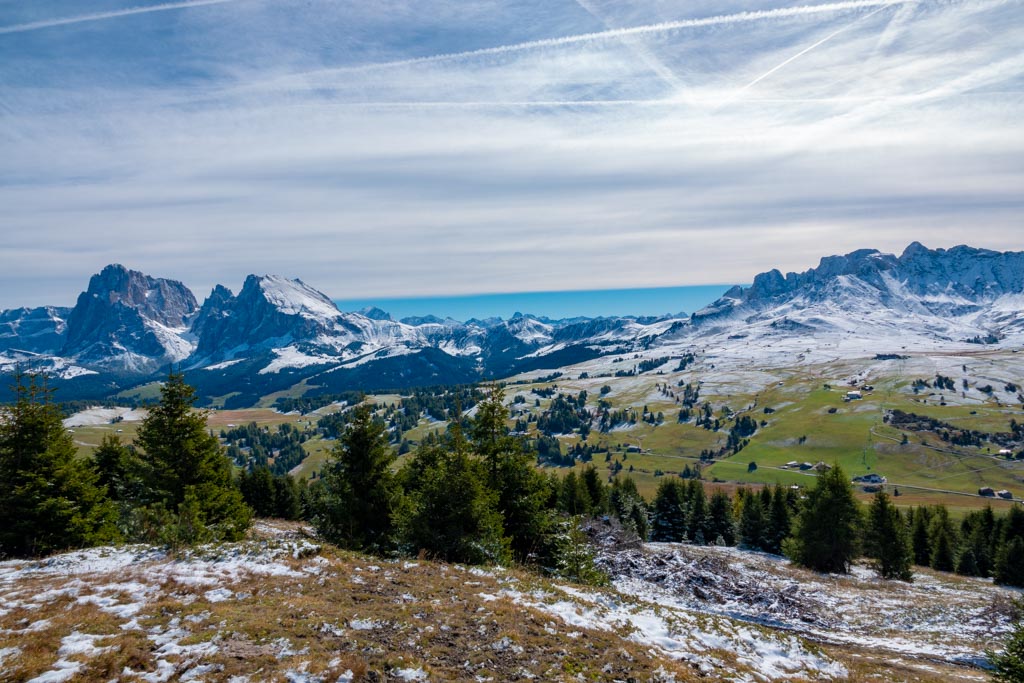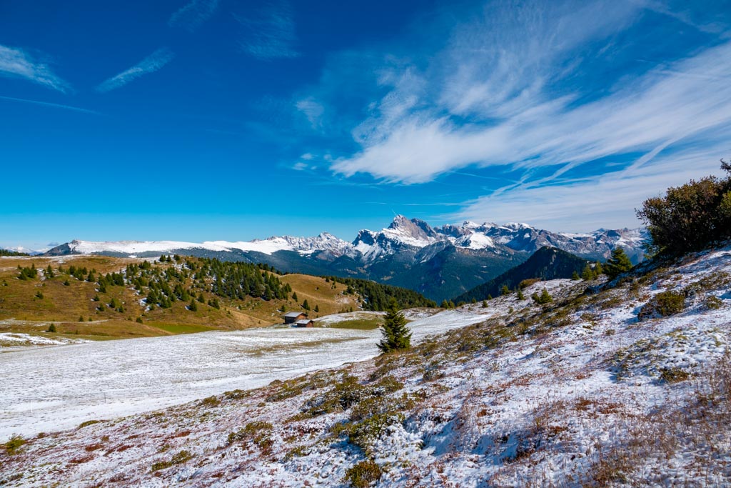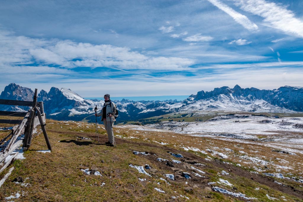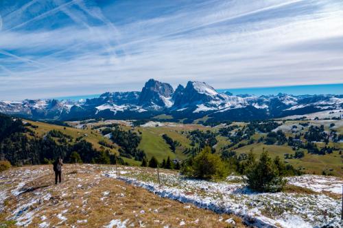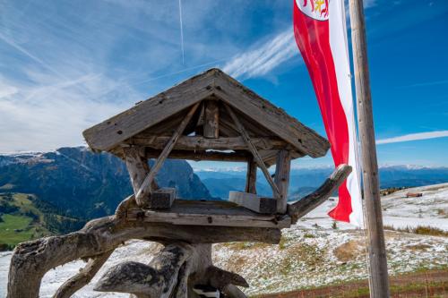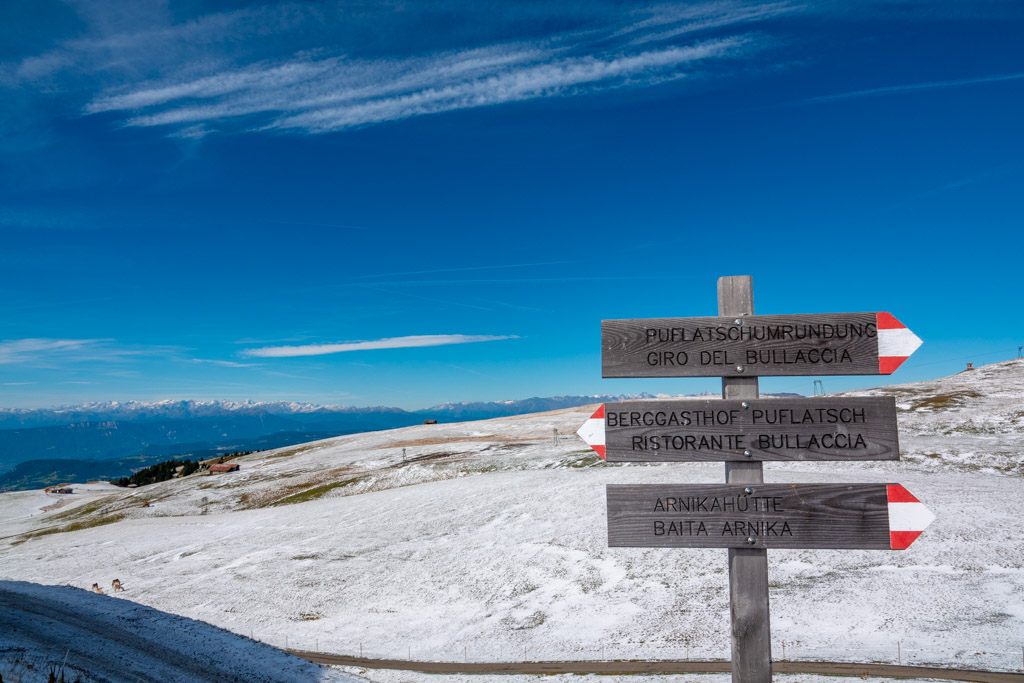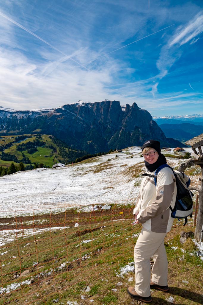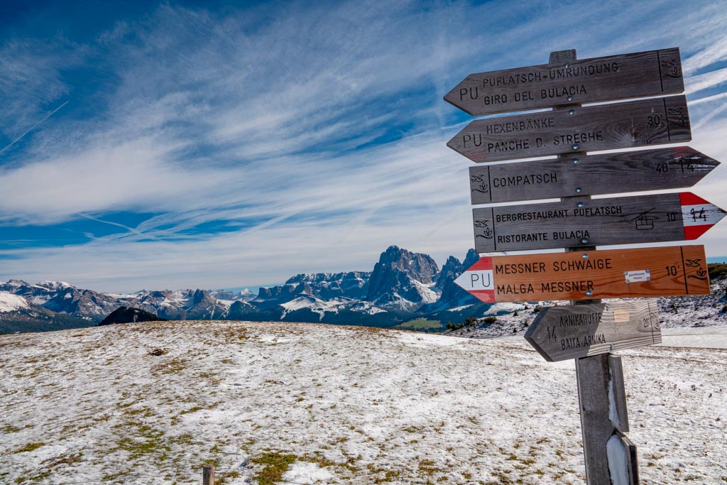 Nachdem es Montag den ganzen Tag geregnet hatte, hat es auf den Bergen Spuren hinterlassen. Die Spitzen waren mit Puderzucker bestäubt. So sind wir eine Stunde nach Seis gefahren, um dort dir Bergwelt zu betrachten. Das war auch kein Fehler, denn es war atemberaubend dort oben. Eines ist sicher, auf der Seiser Alm waren wir nicht das letze mal. Von der Bergstation sind wir zur nächsten Bahn nach Puflatsch hinauf gefahren. Dort haben wir eine Rundwanderung über die Anika Hütte zurück zur Bergstation unternommen. Es war was ganz entspanntes mit 10km und 200 Höhenmetern.