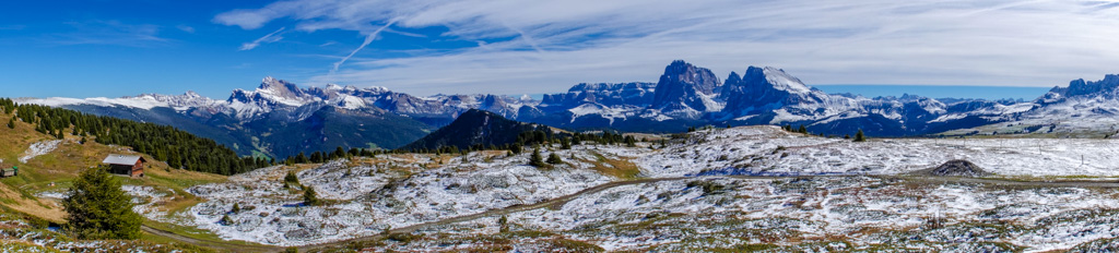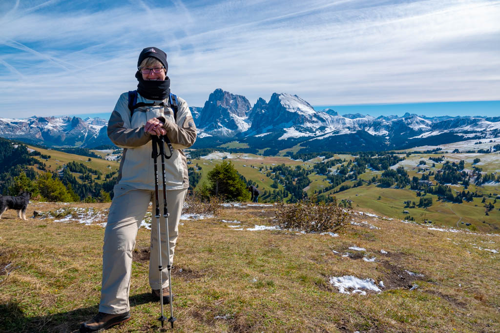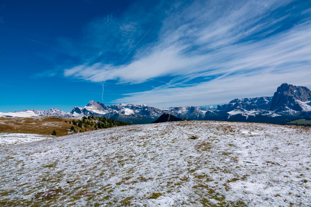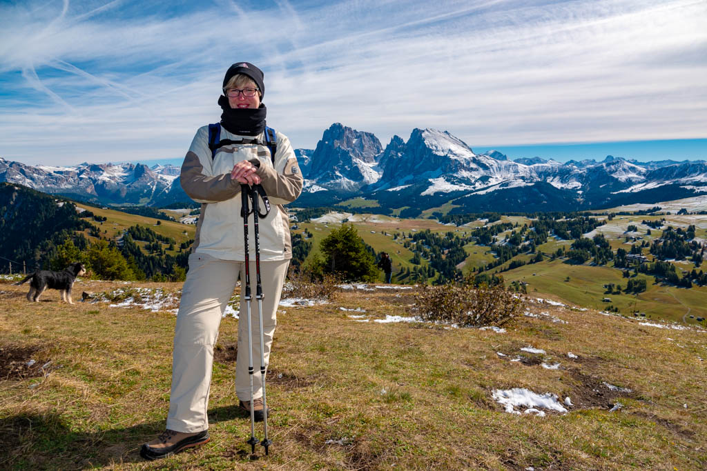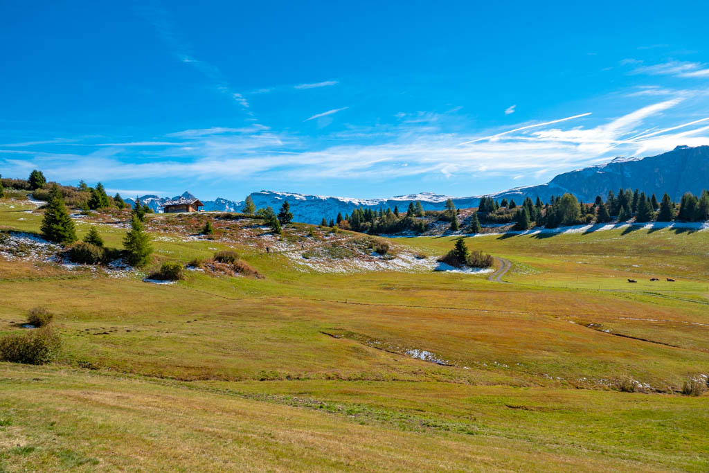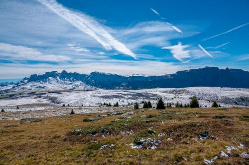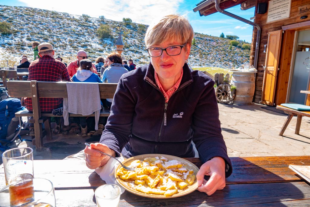 Nachdem es Montag den ganzen Tag geregnet hatte, hat es auf den Bergen Spuren hinterlassen. Die Spitzen waren mit Puderzucker bestäubt. So sind wir eine Stunde nach Seis gefahren, um dort dir Bergwelt zu betrachten. Das war auch kein Fehler, denn es war atemberaubend dort oben. Eines ist sicher, auf der Seiser Alm waren wir nicht das letze mal. Von der Bergstation sind wir zur nächsten Bahn nach Puflatsch hinauf gefahren. Dort haben wir eine Rundwanderung über die Anika Hütte zurück zur Bergstation unternommen. Es war was ganz entspanntes mit 10km und 200 Höhenmetern.