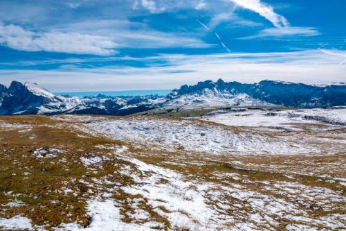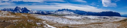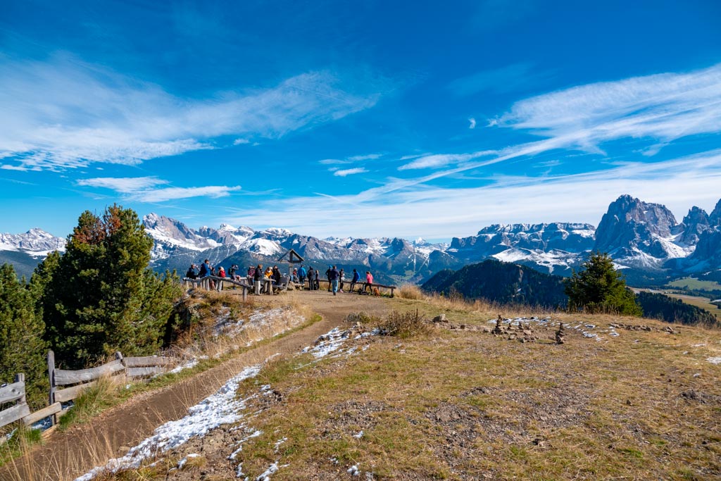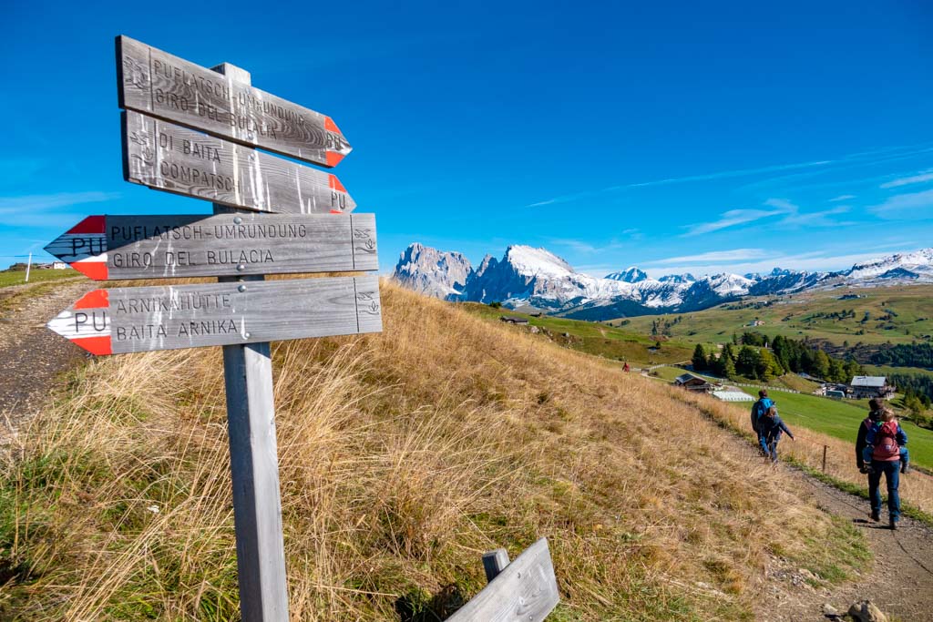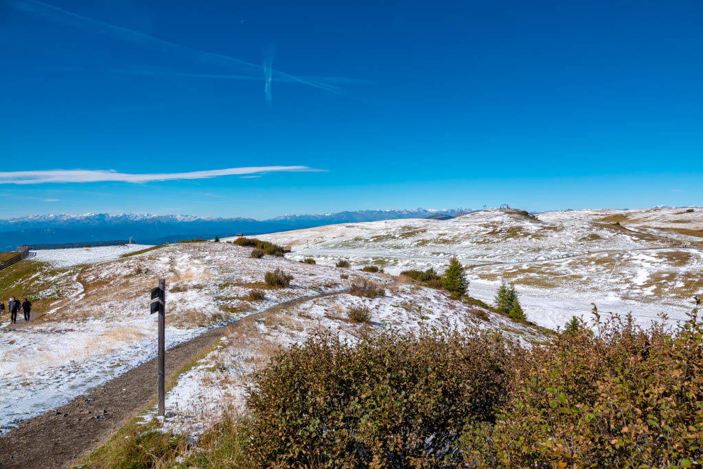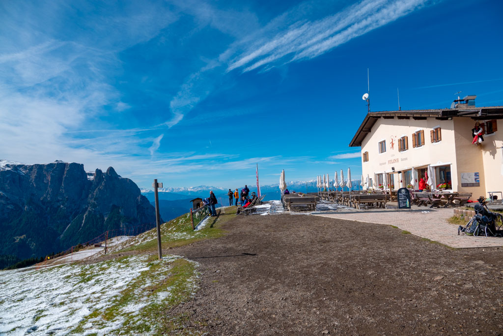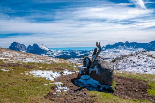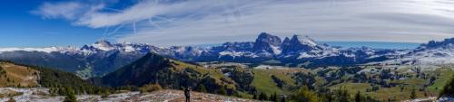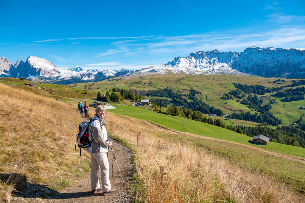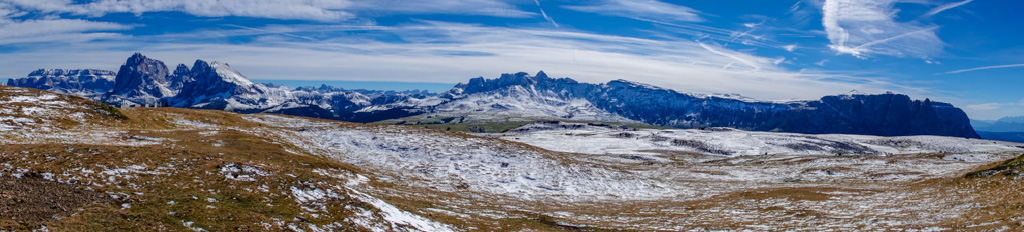 Nachdem es Montag den ganzen Tag geregnet hatte, hat es auf den Bergen Spuren hinterlassen. Die Spitzen waren mit Puderzucker bestäubt. So sind wir eine Stunde nach Seis gefahren, um dort dir Bergwelt zu betrachten. Das war auch kein Fehler, denn es war atemberaubend dort oben. Eines ist sicher, auf der Seiser Alm waren wir nicht das letze mal. Von der Bergstation sind wir zur nächsten Bahn nach Puflatsch hinauf gefahren. Dort haben wir eine Rundwanderung über die Anika Hütte zurück zur Bergstation unternommen. Es war was ganz entspanntes mit 10km und 200 Höhenmetern.