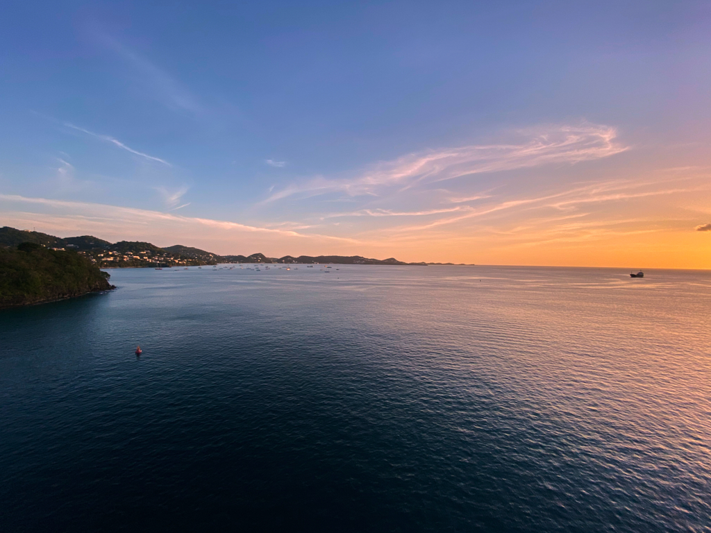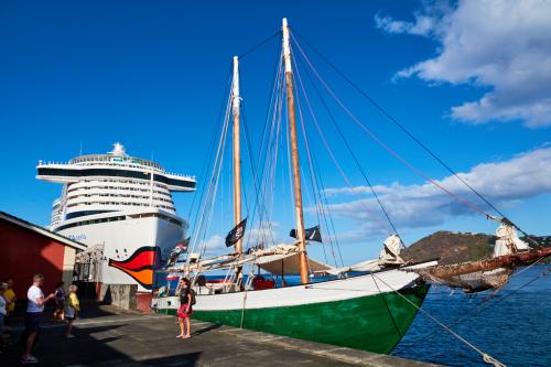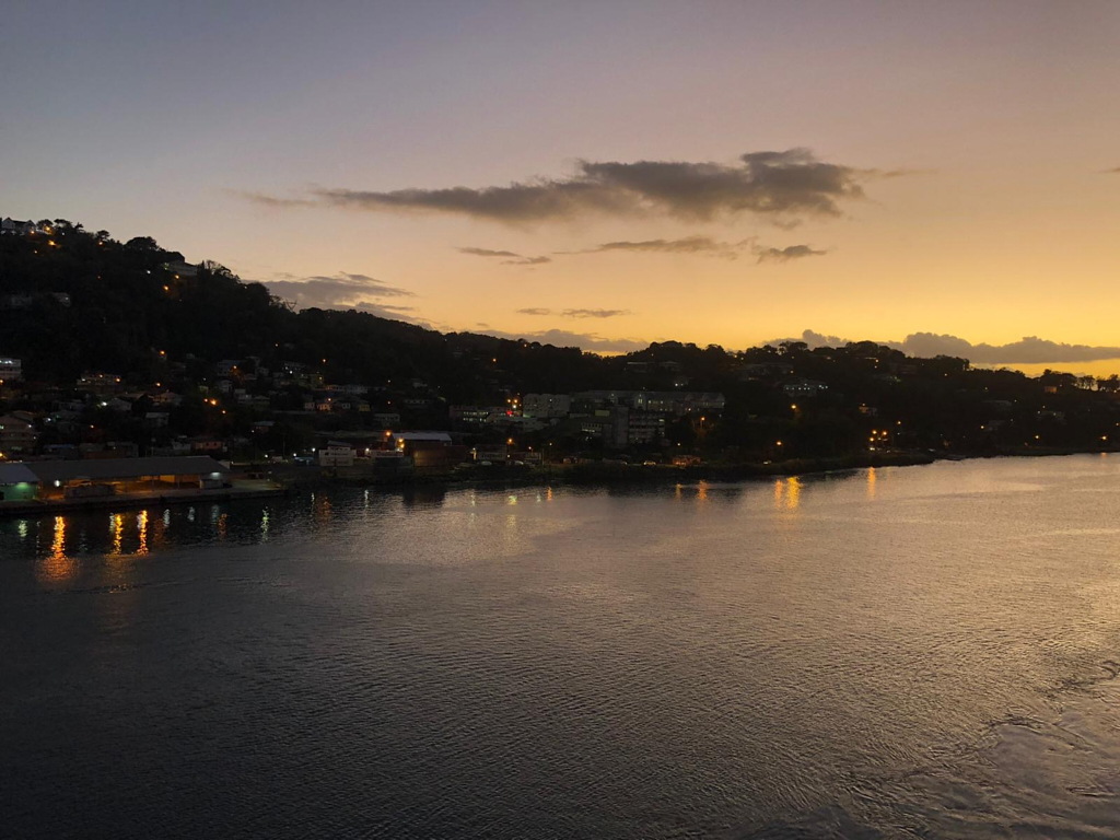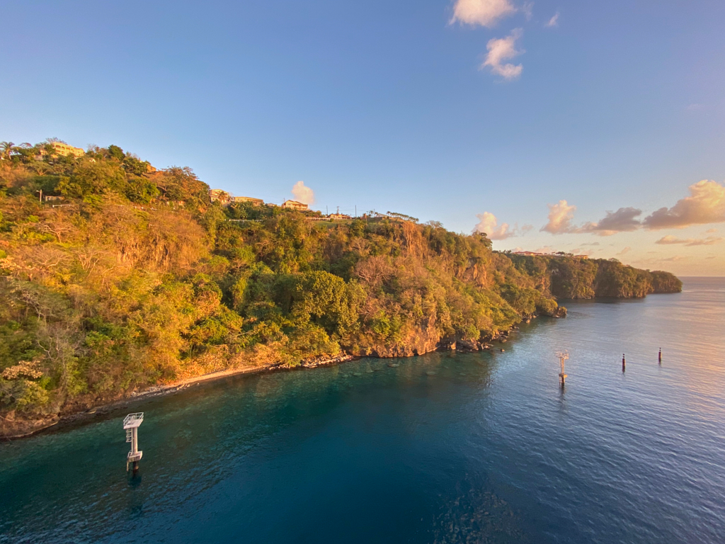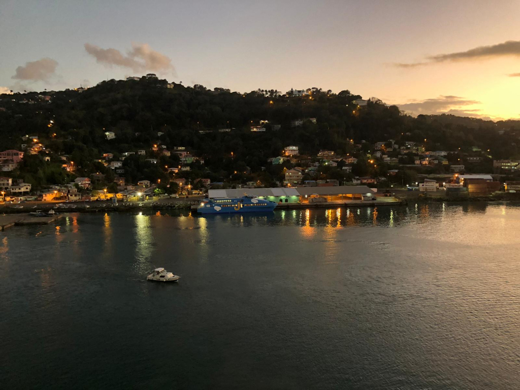 Unser Ausflug auf St. Vincent führte uns auf den Spuren der Piraten von „Der Fluch der Karibik“. So sind wir mit dem im Film verwendeten 85 jährigen Segelschoner an der Küste vorbei gefahren, wo auch ein paar der Filmkulissen waren. An Bord der Besatzung war auch ein Filmstatist es Fimes anwesend. In einer schönen Bucht mit schwarzem Sand konnten wir ein wenig schwimmen, bevor es dann wieder zurück Richtung Hafen ging. Die Stadt Kingstown am Hafen zeigte deutlich die dort vorherrschende Armut. Wenn man das im Vergleich zu Deutschland so sagen darf. Doch freundlich und glücklich scheinen dort alle zu sein. Bei einem schönen Sonnenuntergang haben wir St. Vincent dann wieder verlassen und machten uns auf den Weg nach St. Lucia, in der Hoffnung dort anlegen zu dürfen. Denn in Zeiten des Coronavirus kommt es hin und wieder vor, dass Kreuzfahrtschiffe nicht anlegen dürfen.