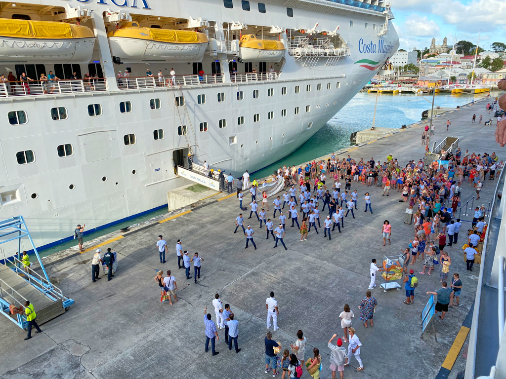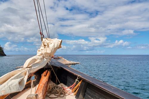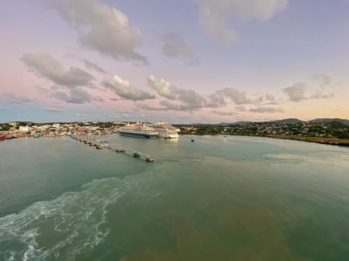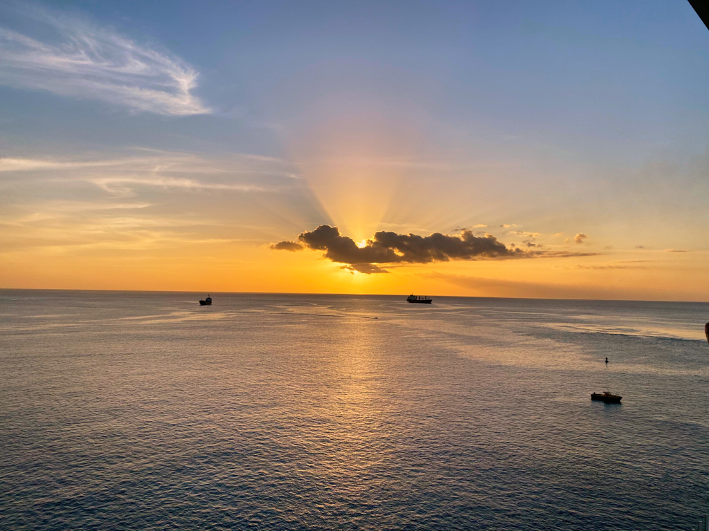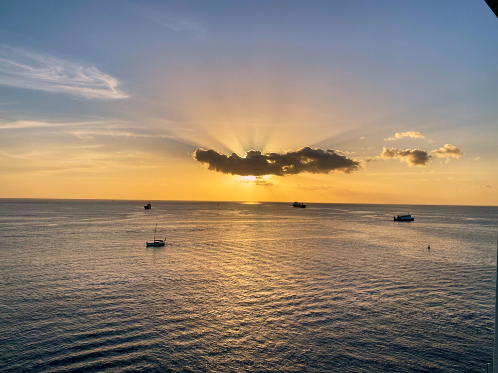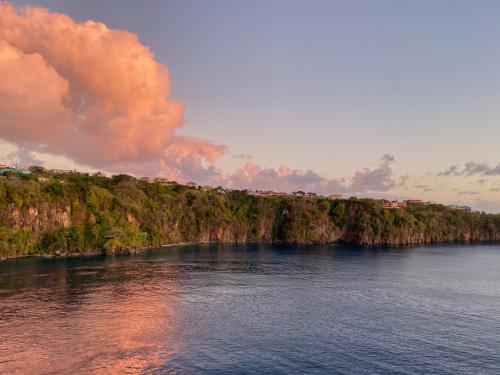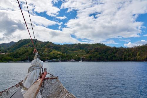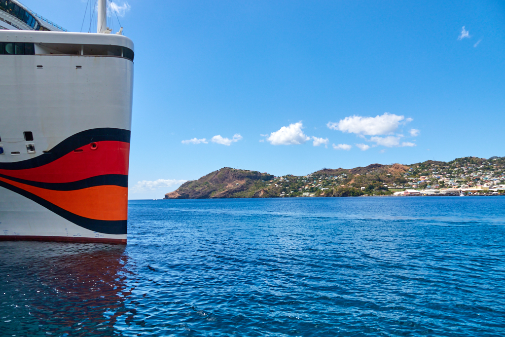 Unser Ausflug auf St. Vincent führte uns auf den Spuren der Piraten von „Der Fluch der Karibik“. So sind wir mit dem im Film verwendeten 85 jährigen Segelschoner an der Küste vorbei gefahren, wo auch ein paar der Filmkulissen waren. An Bord der Besatzung war auch ein Filmstatist es Fimes anwesend. In einer schönen Bucht mit schwarzem Sand konnten wir ein wenig schwimmen, bevor es dann wieder zurück Richtung Hafen ging. Die Stadt Kingstown am Hafen zeigte deutlich die dort vorherrschende Armut. Wenn man das im Vergleich zu Deutschland so sagen darf. Doch freundlich und glücklich scheinen dort alle zu sein. Bei einem schönen Sonnenuntergang haben wir St. Vincent dann wieder verlassen und machten uns auf den Weg nach St. Lucia, in der Hoffnung dort anlegen zu dürfen. Denn in Zeiten des Coronavirus kommt es hin und wieder vor, dass Kreuzfahrtschiffe nicht anlegen dürfen.
