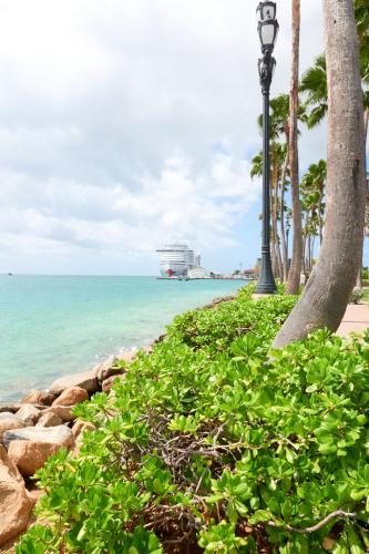 Wir haben einen Ausflug (Das Beste von Aruba und Strand) gebucht, der bereits um 8:45 Uhr losging. Unser netter Busfahrer führte uns an die schönsten Stellen Arubas und setzte uns am Schluss für 1,5 Stunden am Eagles Beach ab. Wieder auf dem Schiff, haben wir uns kurz frisch gemacht und sind schnell was Essen gegangen. Danach sind wir noch auf eigene Faust durch das Hafenstädtchen Oranjestad gebummelt. Die Hitze hat uns dabei aber echt zu schaffen gemacht.