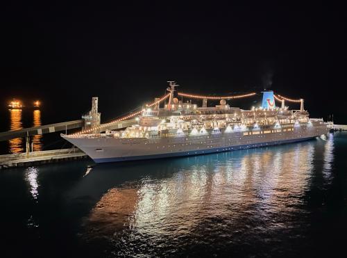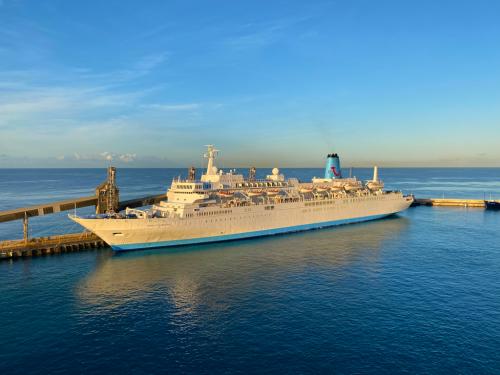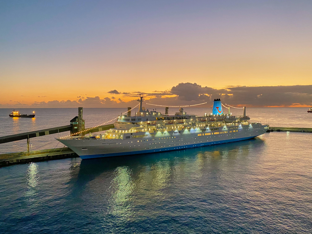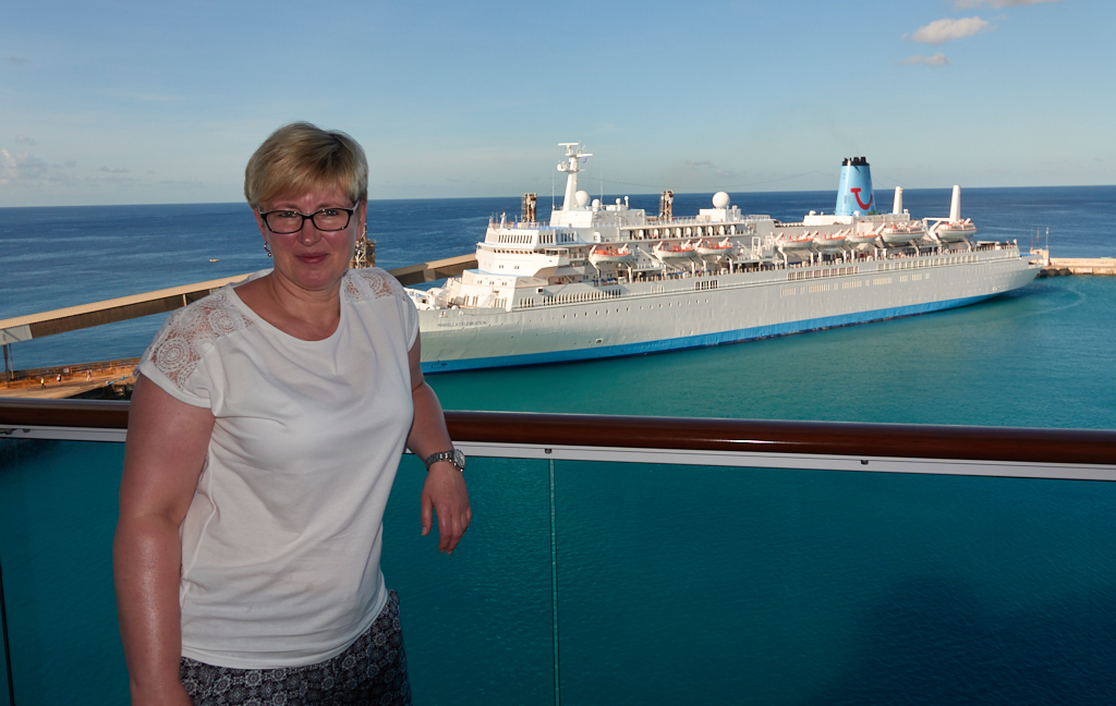 Um 7:25 Uhr ging es von Düsseldorf los nach München, wo wir 4 Stunden Aufenthalt hatten. Um 12:20 ging es dann los, in einem 10 stündigen Flug nach La Romana (Dominikanische Republik). So gegen 18 Uhr Ortszeit sind wir dann gelandet. Der Transfer zum Schiff war ganz problemlos. Aus dem Flieger raus, kurz über das Rollfeld direkt zum Bus und das alles ohne Passkontrolle. Auch der Checkin am Schiff ging schneller wie in manchem Hotel. Wir sind direkt auf unsere Kabine, wo wir ein paar Minuten später bereits unsere Koffer bekommen haben. Schnell ausgepackt und dann zum Essen. Denn um 21:15 Uhr mussten wir ja zu der lästigen Seenotrettungsübung. Danach sind wir dann total erschöpft ins Bett gefallen.