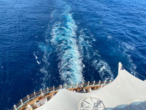 Ausschlafen war durch die Zeitumstellung irgendwie nicht drin. Deshalb sind wir bereits um 6 Uhr durch das Schiff gestiefelt, was so früh auch seinen Reiz hatte. Nach einem ausgiebigen Frühstück haben wir noch einige Kilometer das Schiff erkundet und für Gut befunden 😀