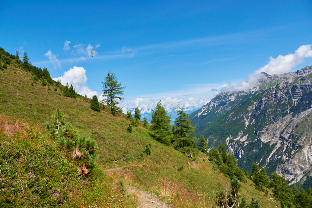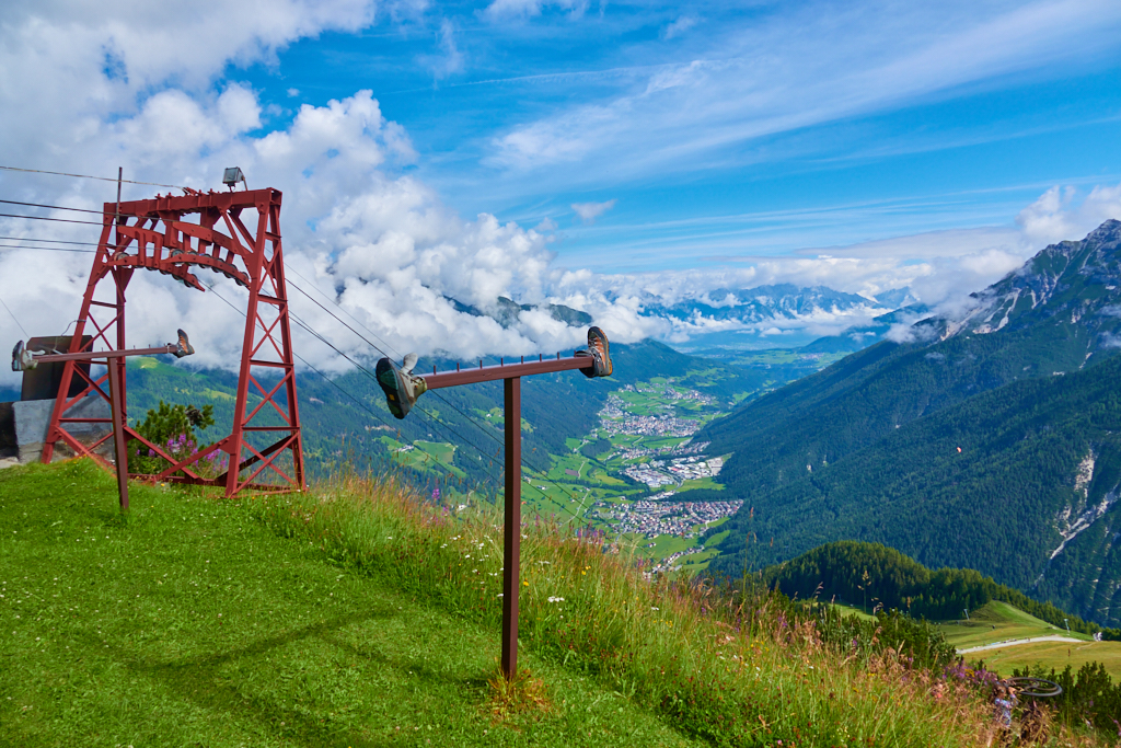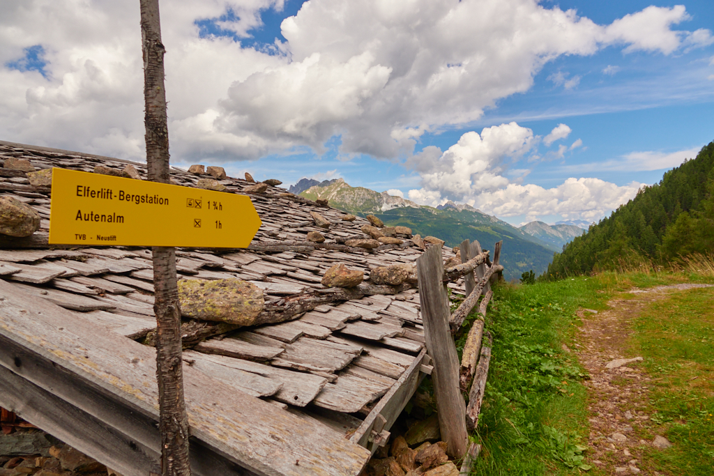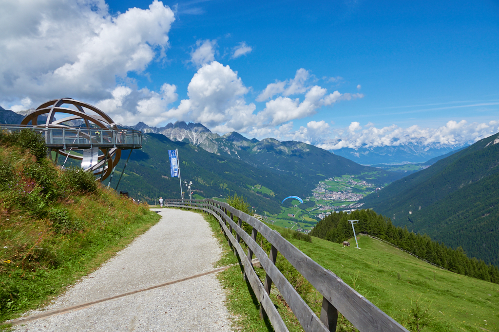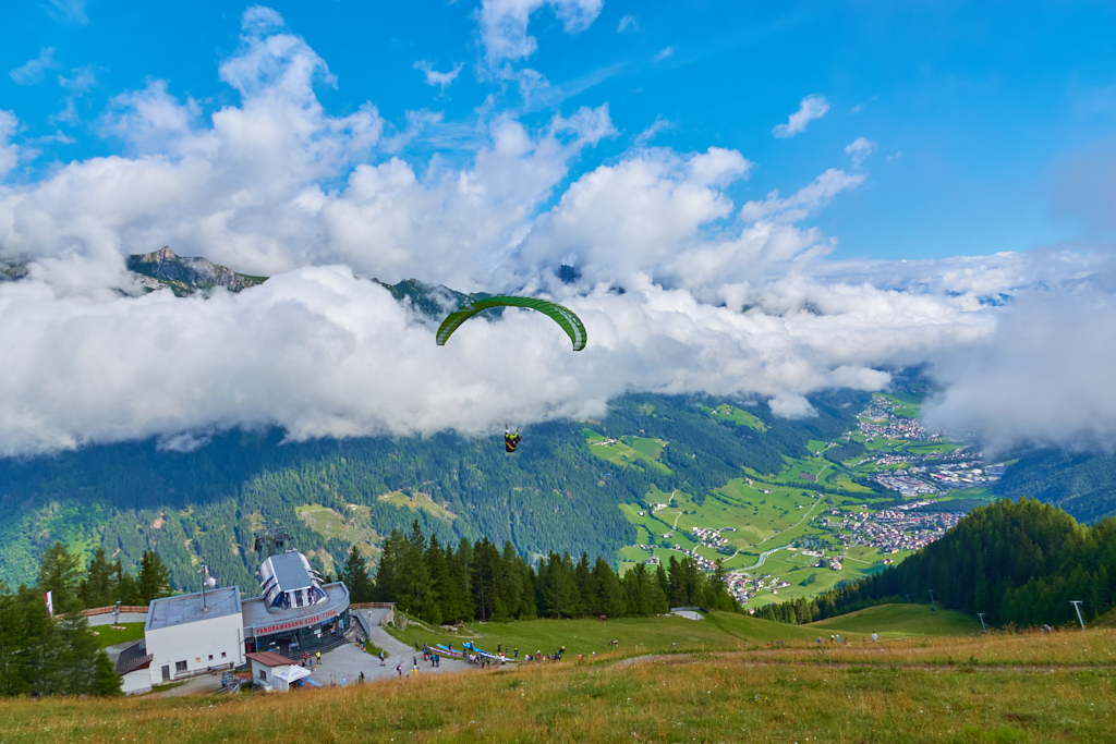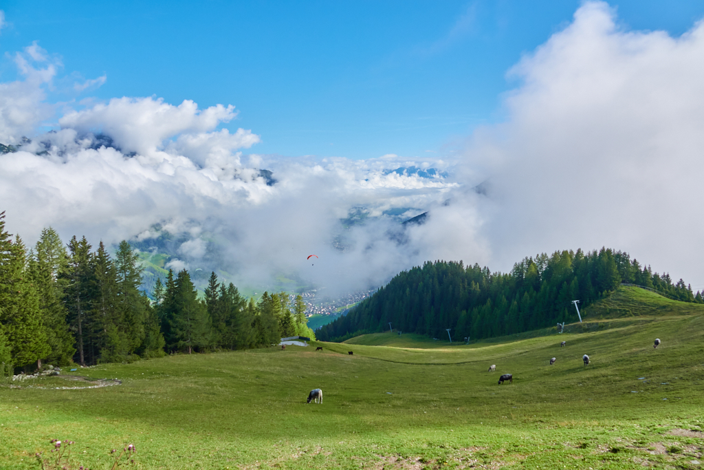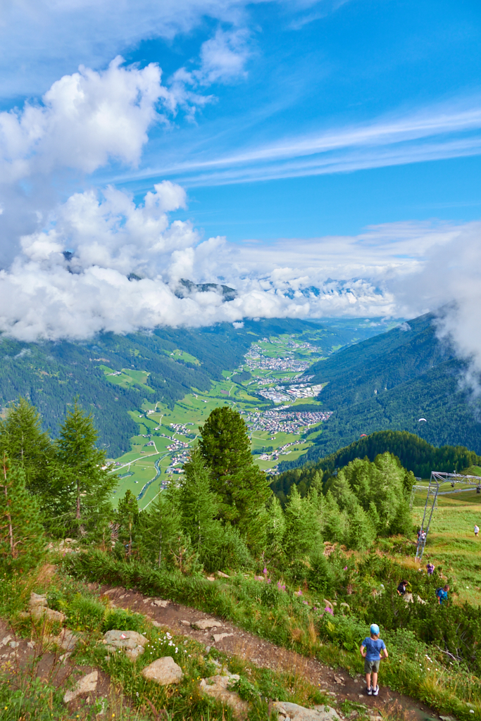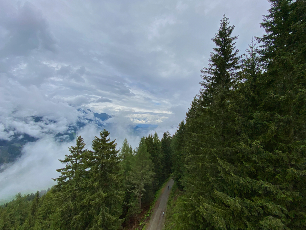 Am letzten Tag, wollten wir nur noch was leichtes machen. Da es gegen Nachmittag regnen sollte, kam uns das ganz recht. So sind wir mit der Seilbahn auf den Schlick 2000 und sind dann über den Panoramaweg und den Scheibenweg zur Mittelstation abgestiegen. Die immer weiter zunehmenden Wolken sahen zum Teil ganz schön bedrohlich aus. Trotz allem sind wir noch trocken zurück gekommen, bevor dann das Gewitter anfing.