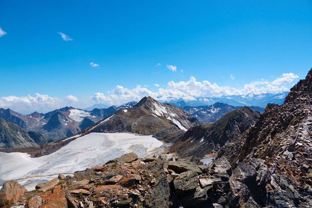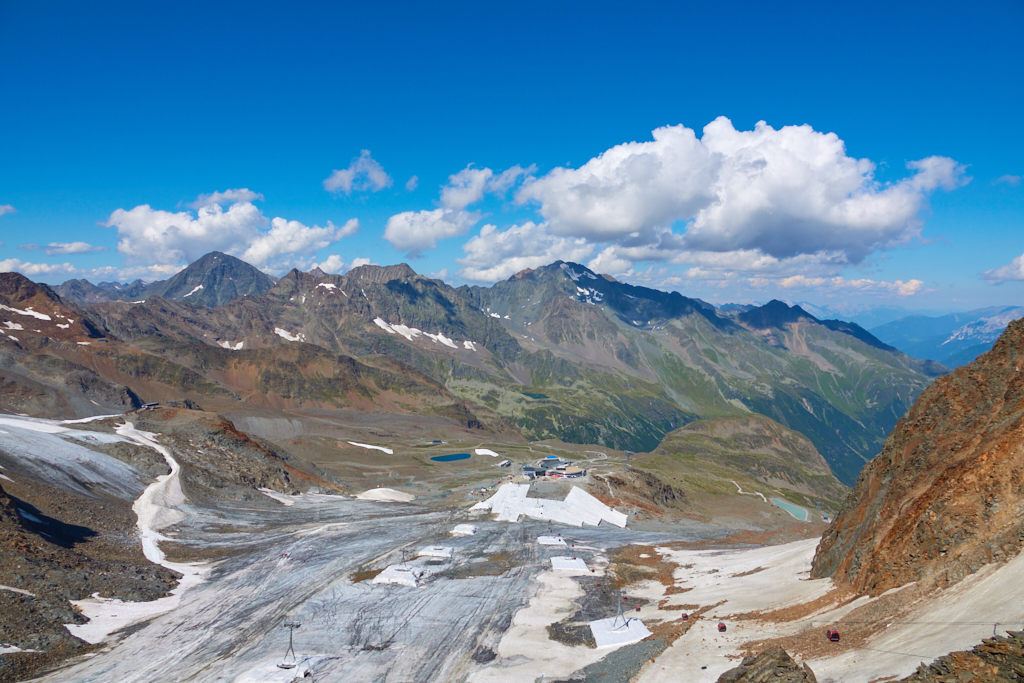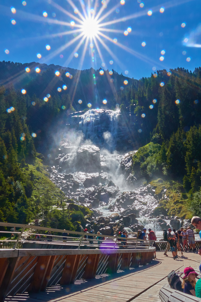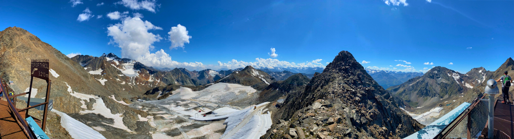 Heute ging es hoch hinaus. Von der Tschangelair Alm ging es am wilden Wasser Weg zum Grawa Wasserfall. Eigentlich wollten wir danach zur Sulzenau Alm. Diese hatte aber Ruhetag, also sind wir weiter zur Gletscherbahn, mit der wir bis auf 3210 m zum „Top of Tirol“ hinauf gefahren sind. Der Weg zur Aussichtsplattform ist immer ein Graus. Die Luft ist so dünn, dass einem das Atmen bei Belastung schon sehr schwer fällt. So zumindest bei uns. Aber der Ausblick entschädigt einen dafür.