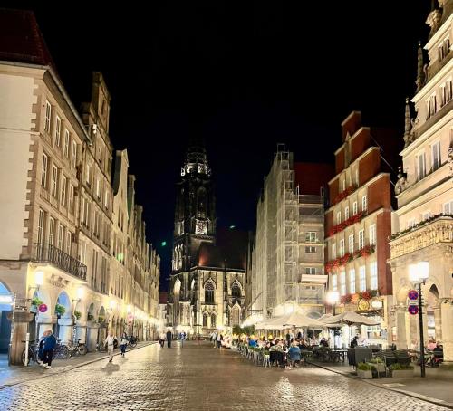 Münster ist eine Stadt im Westen Deutschlands. Ein bekanntes Wahrzeichen der Stadt ist der St.-Paulus-Dom aus dem 13. Jahrhundert mit gotischen und romanischen Elementen. Der Prinzipalmarkt ist von Giebelhäusern, dem gotischen Rathaus und der Lambertikirche aus dem Spätmittelalter umgeben. Im Park des barocken Fürstbischöflichen Schlosses befinden sich Gewächshäuser des Botanischen Gartens. Das Kunstmuseum Pablo Picasso beherbergt eine Sammlung von Lithografien des Malers.